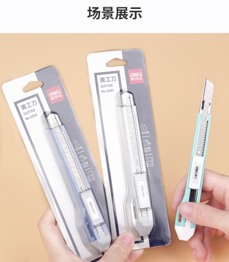 得力2031帶金屬護(hù)套塑料美工刀9mm