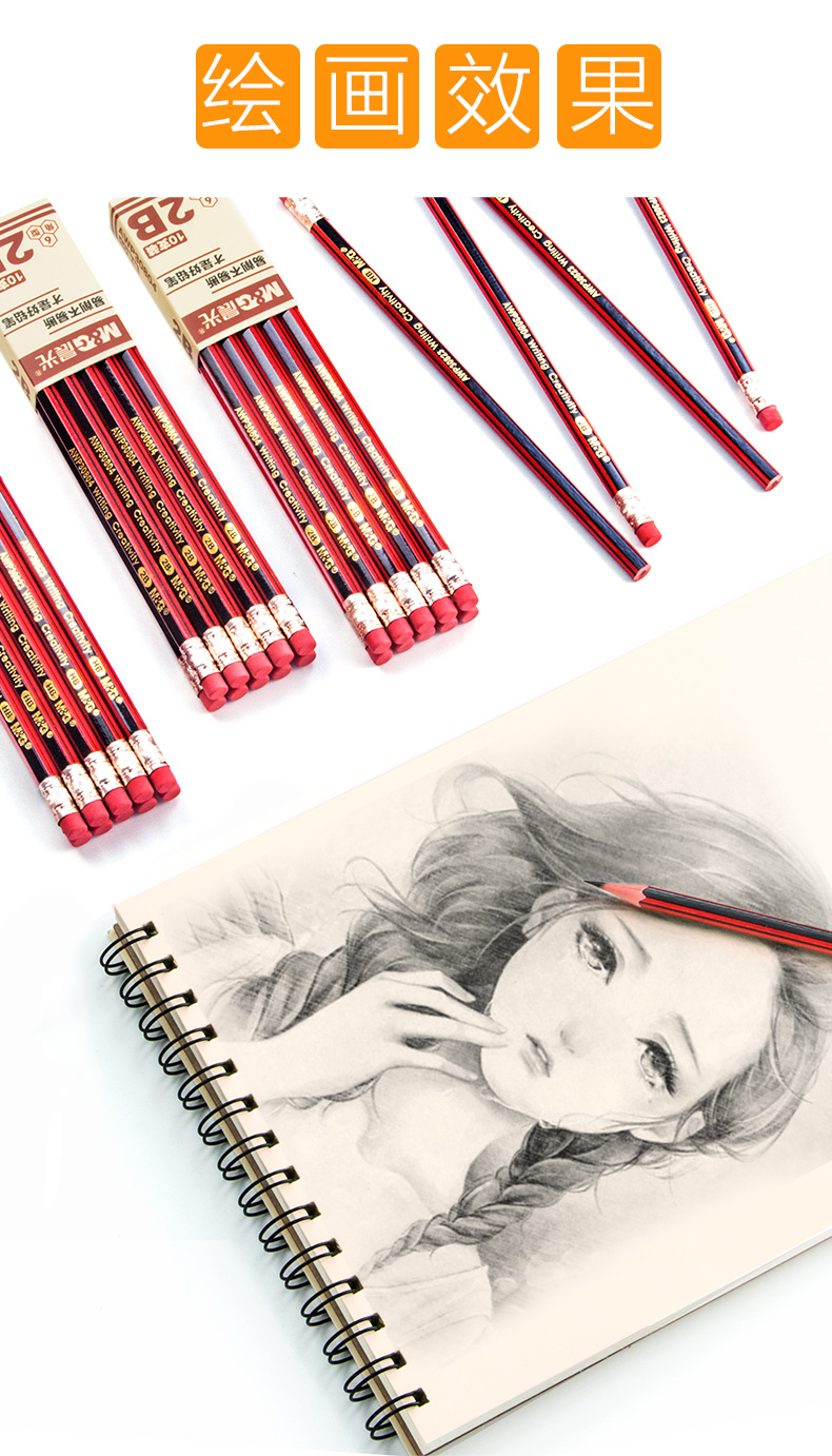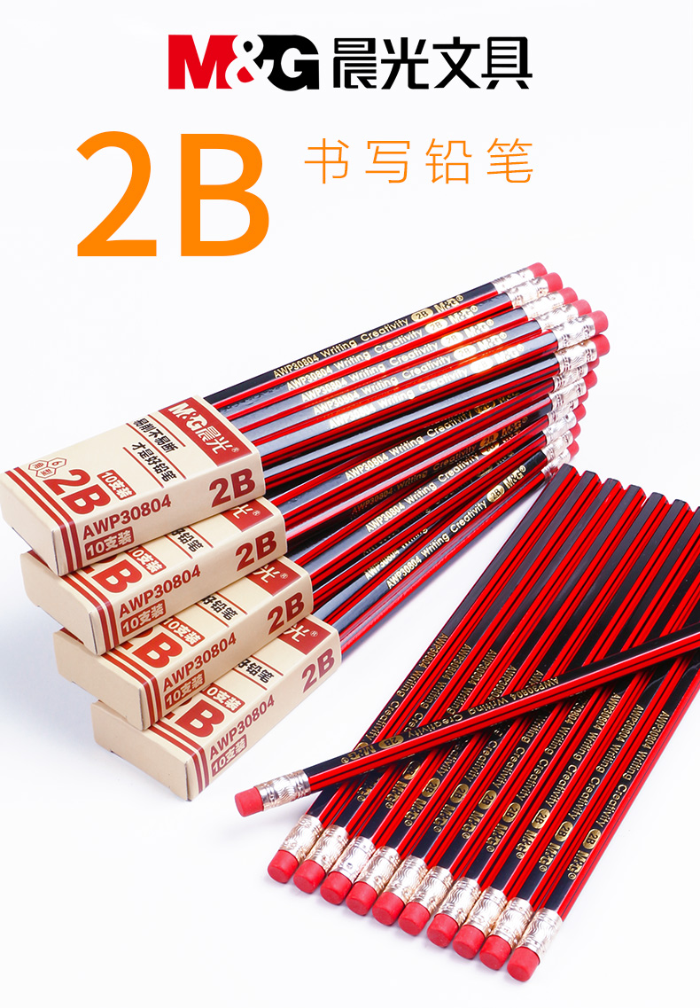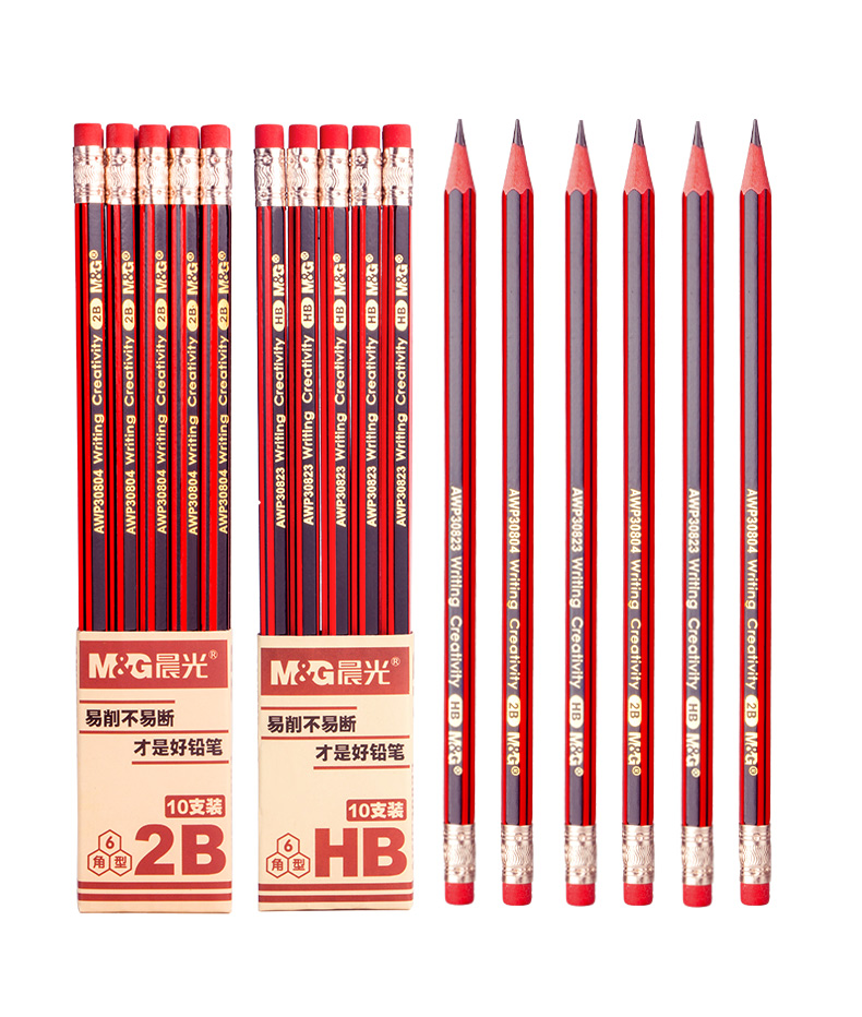 晨光2B六角木桿鉛筆紅黑抽條AWP30804*10