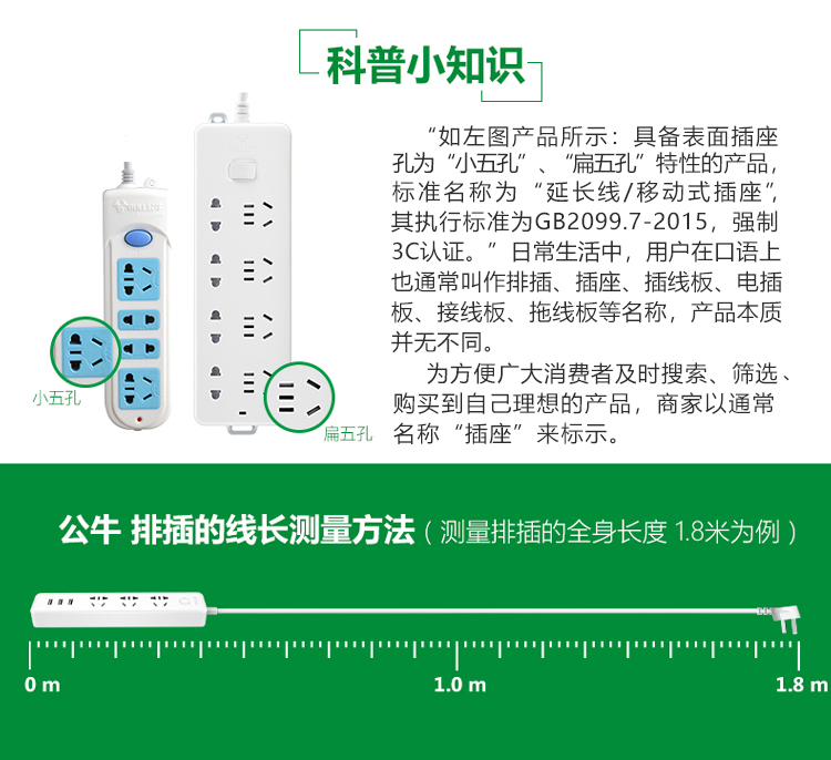 公牛GN-607插座 4孔1.8米