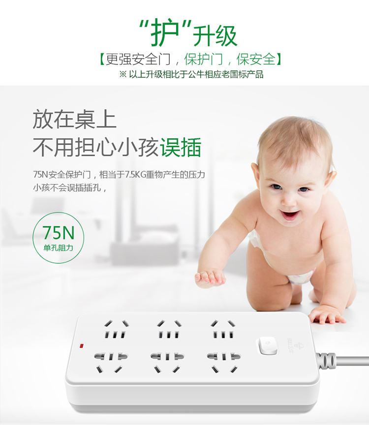 公牛GN-609S插座 六孔3米