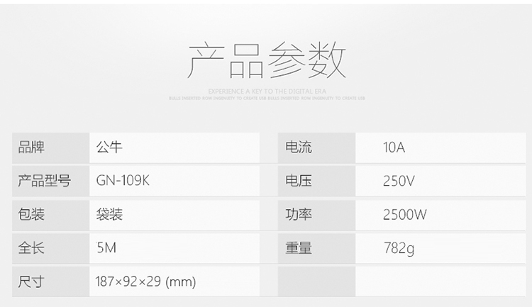 公牛GN-605S插座 十孔5米