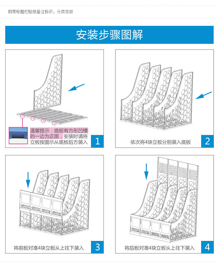 齊心B2174超省錢四格資料架藍*16