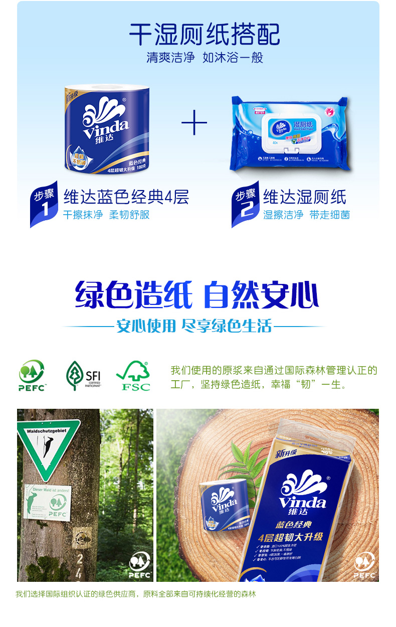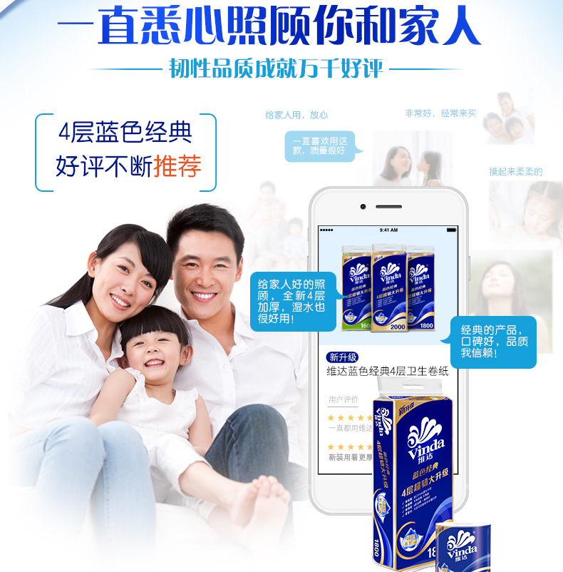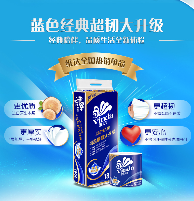 維達V4069藍色經典卷筒紙4層140g*6