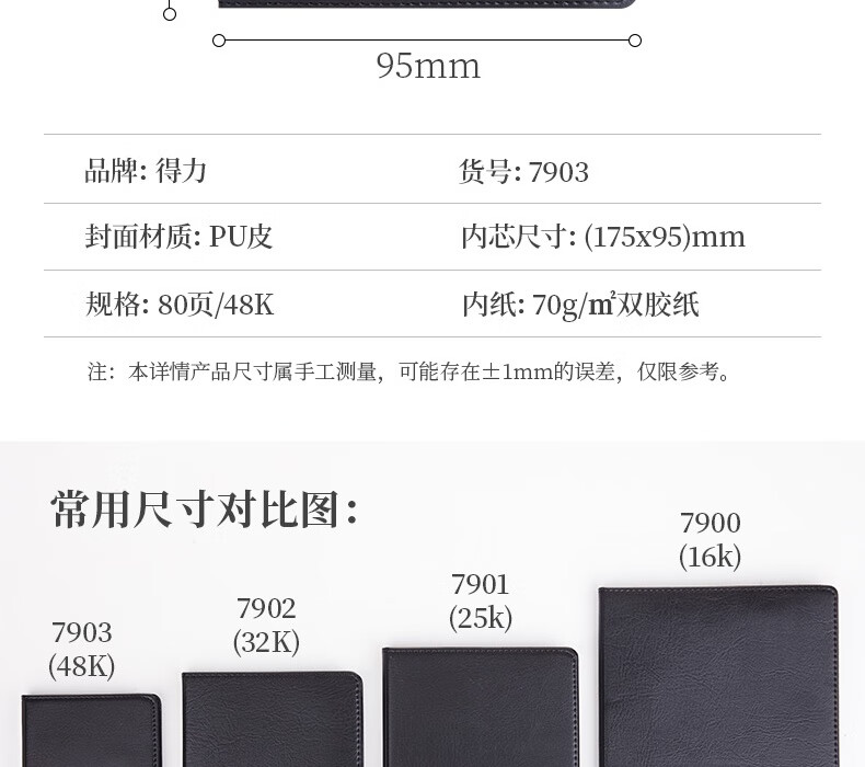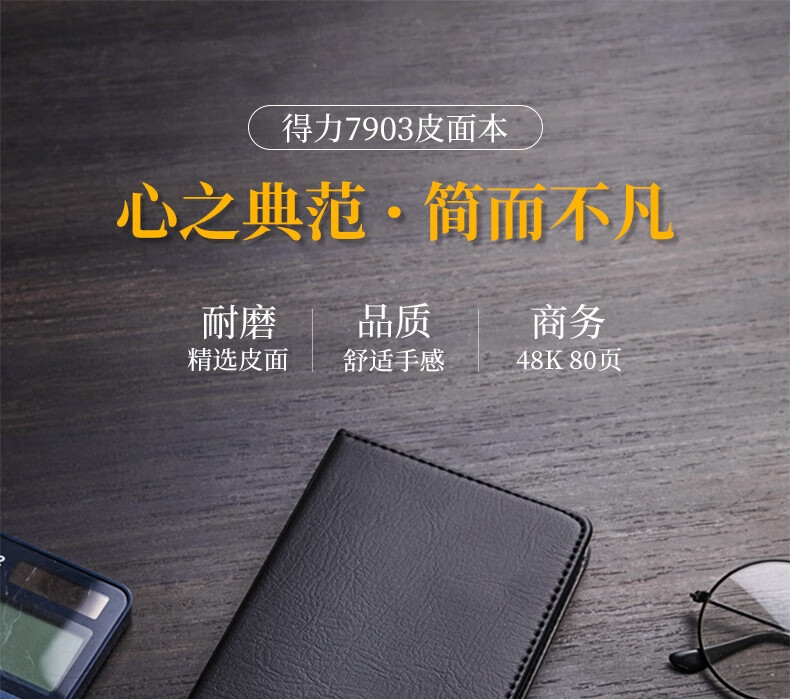 得力7903皮面筆記本(黑)80張-48K