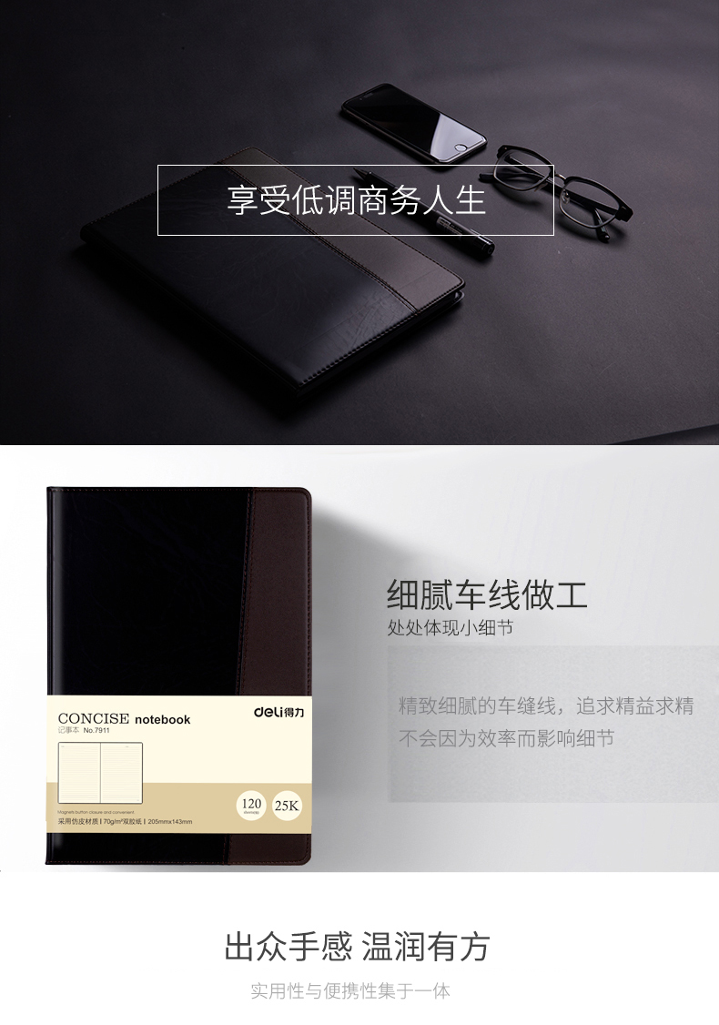 得力7911皮面筆記本(黑)-120頁-25K(本)