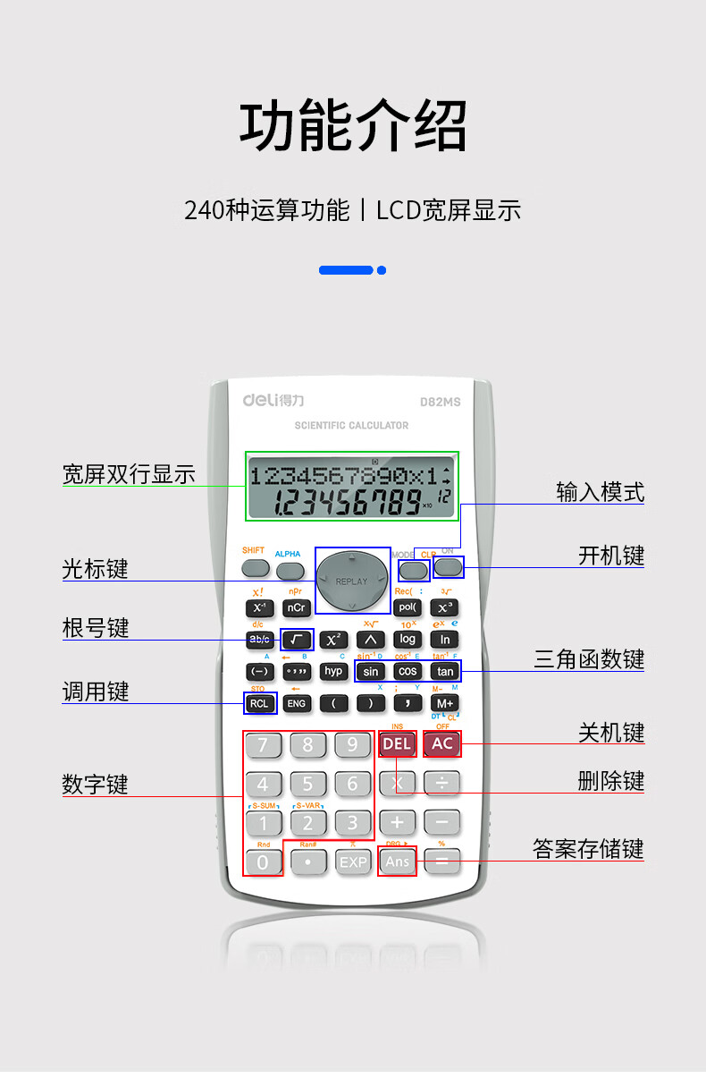 得力D82MS函數計算器(藍)