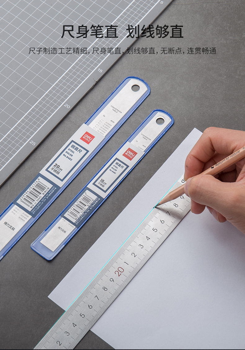 得力8462鋼直尺20cm*24