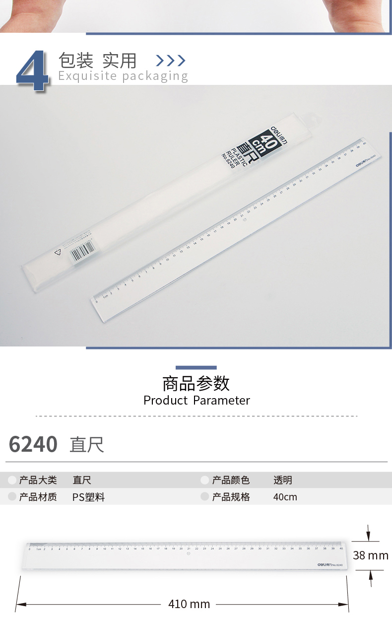 得力6240塑料直尺40cm*20
