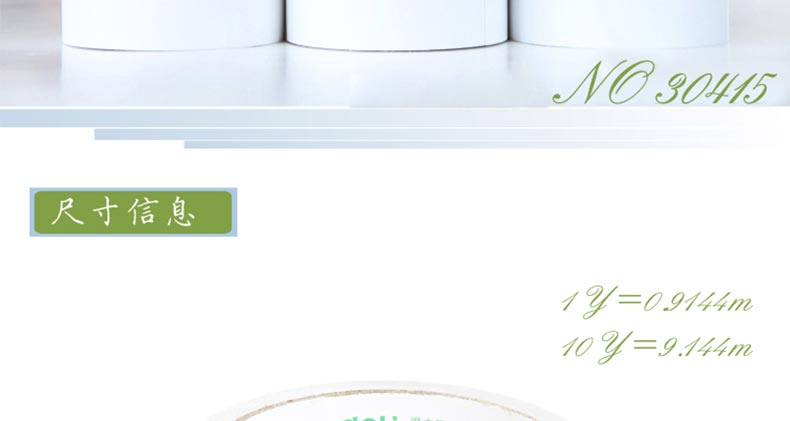 得力30415棉紙雙面膠帶36mm*10y*80um(白)(8卷/筒)
