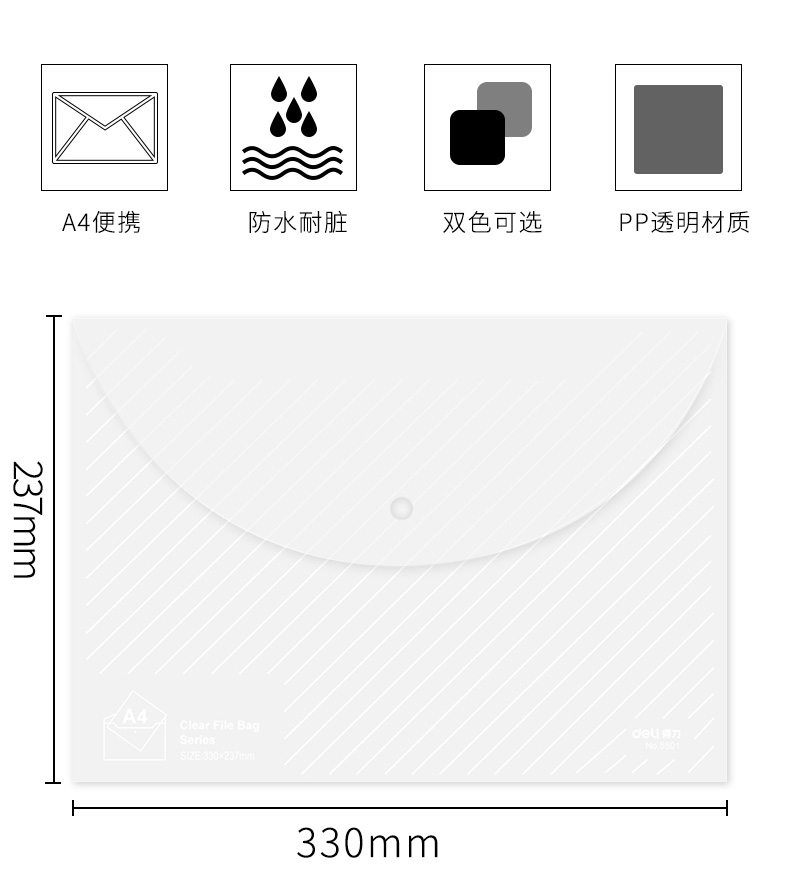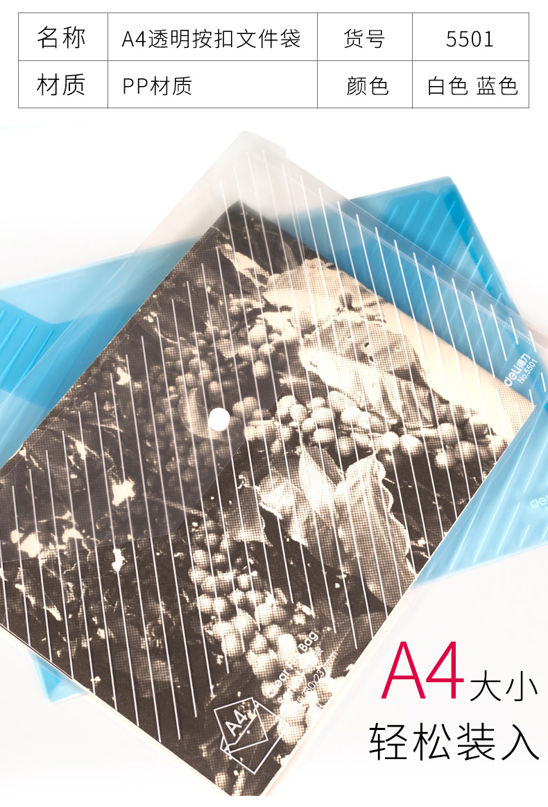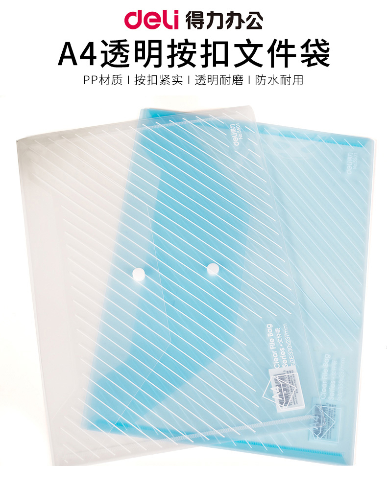得力5501 A4按扣透明文件袋*10