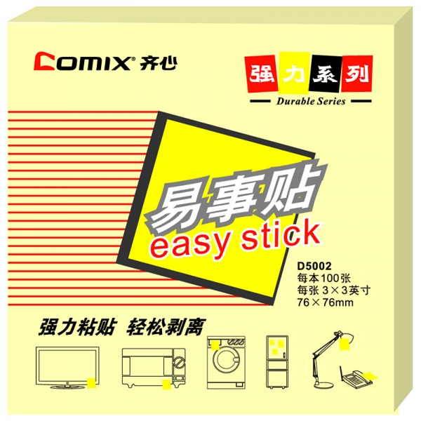 齊心D5003強力系列易事貼黃色76*101mm*12