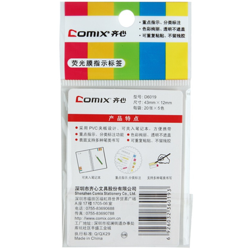 齊心D6019熒光膜箭頭指示標簽貼X5色*24