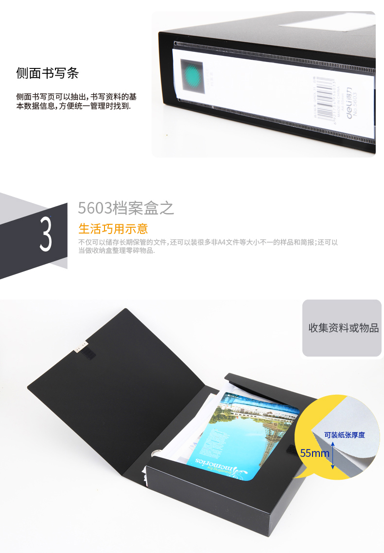 得力5603檔案盒55mm(黑)