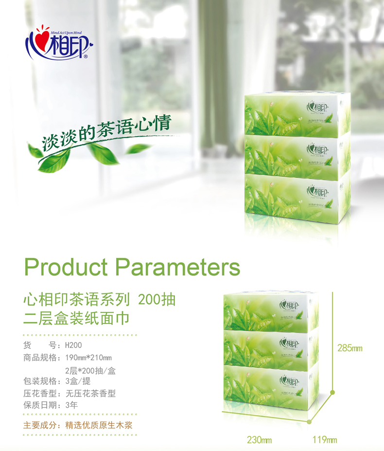 心相印茶語H200硬盒抽紙2層200抽(3pcs)*12