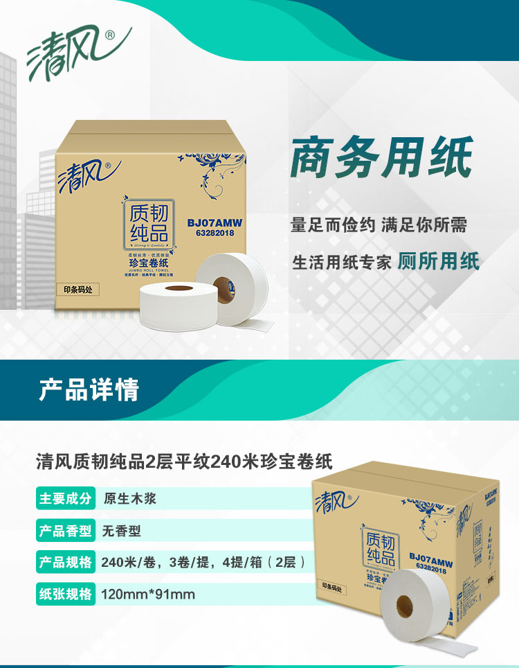 清風BJ07AMW大卷紙2層240米*12