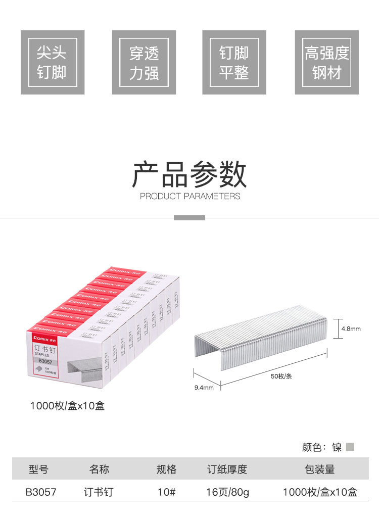 適用類(lèi)型 : 齊心B3057訂書(shū)針10#