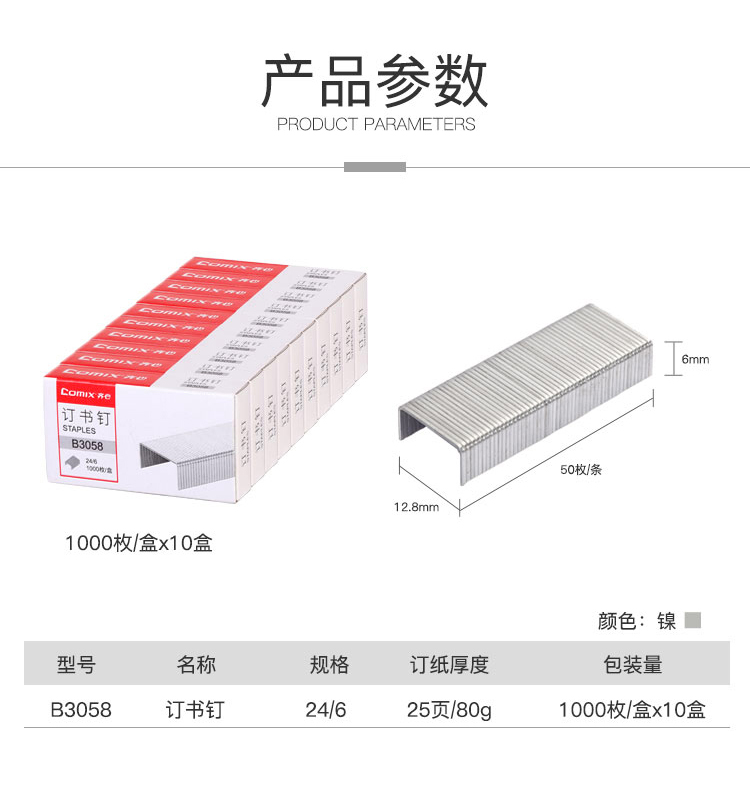 適用類型 : 齊心B3058訂書釘24/6 25頁