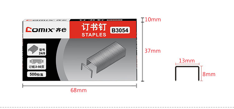 齊心B3054加厚訂書釘24/8 50頁*10