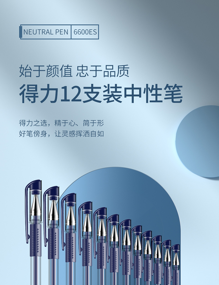 得力6600ES中性筆0.5mm子彈頭(藍)*12