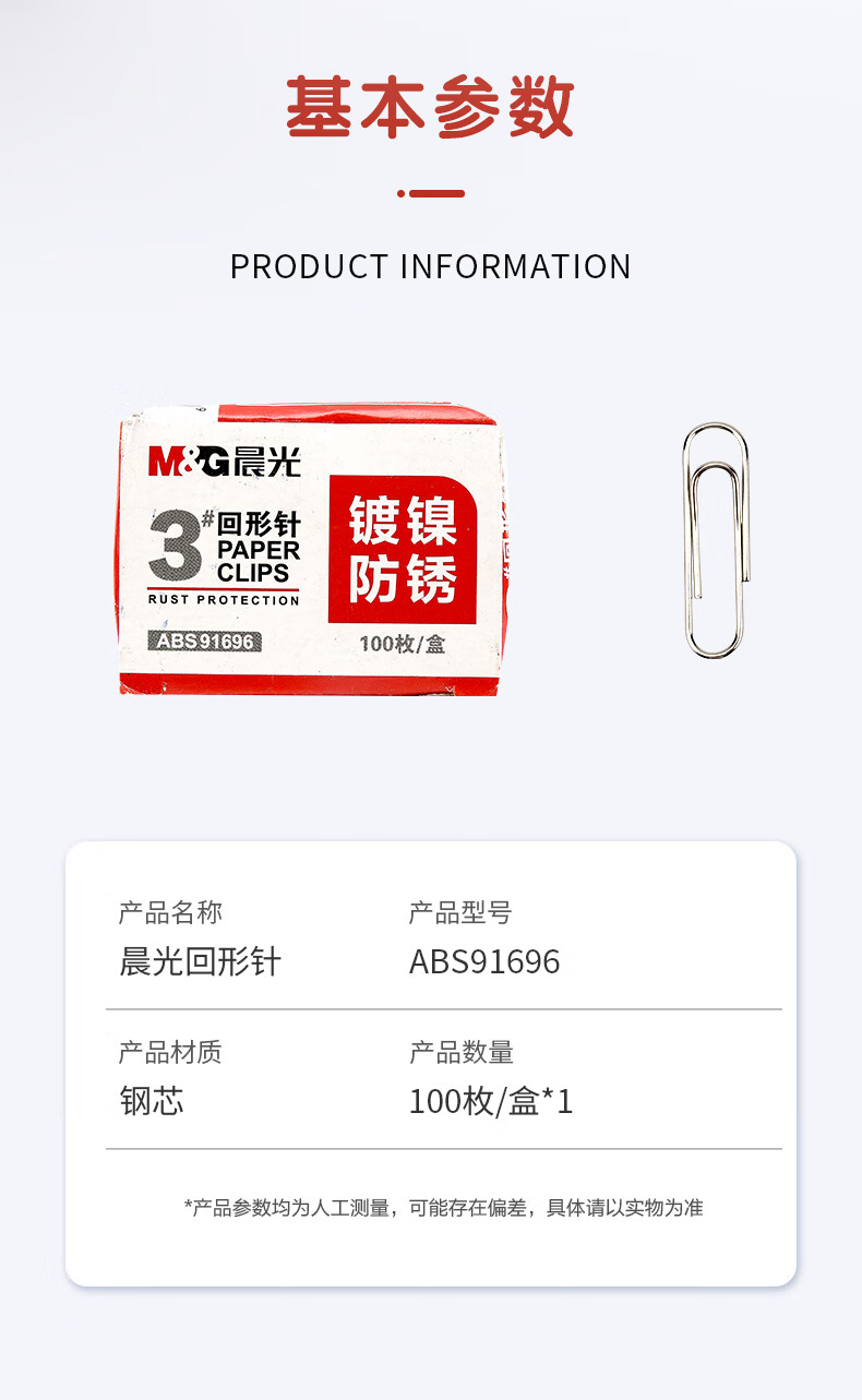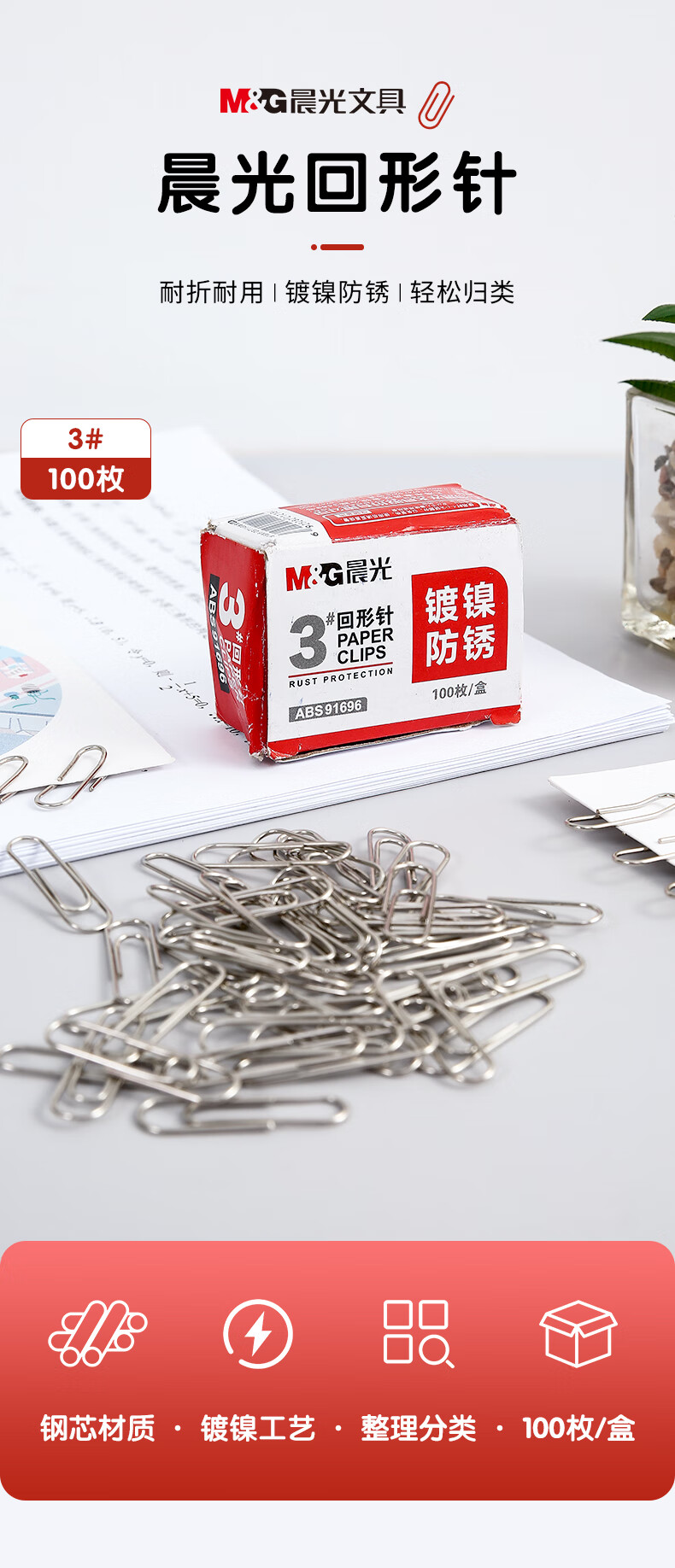 晨光辦公用3號金屬回形針紙盒裝ABS91696*10