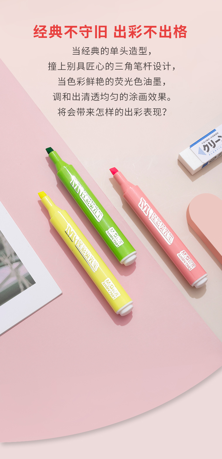 晨光AHMV7602三角熒光筆6色