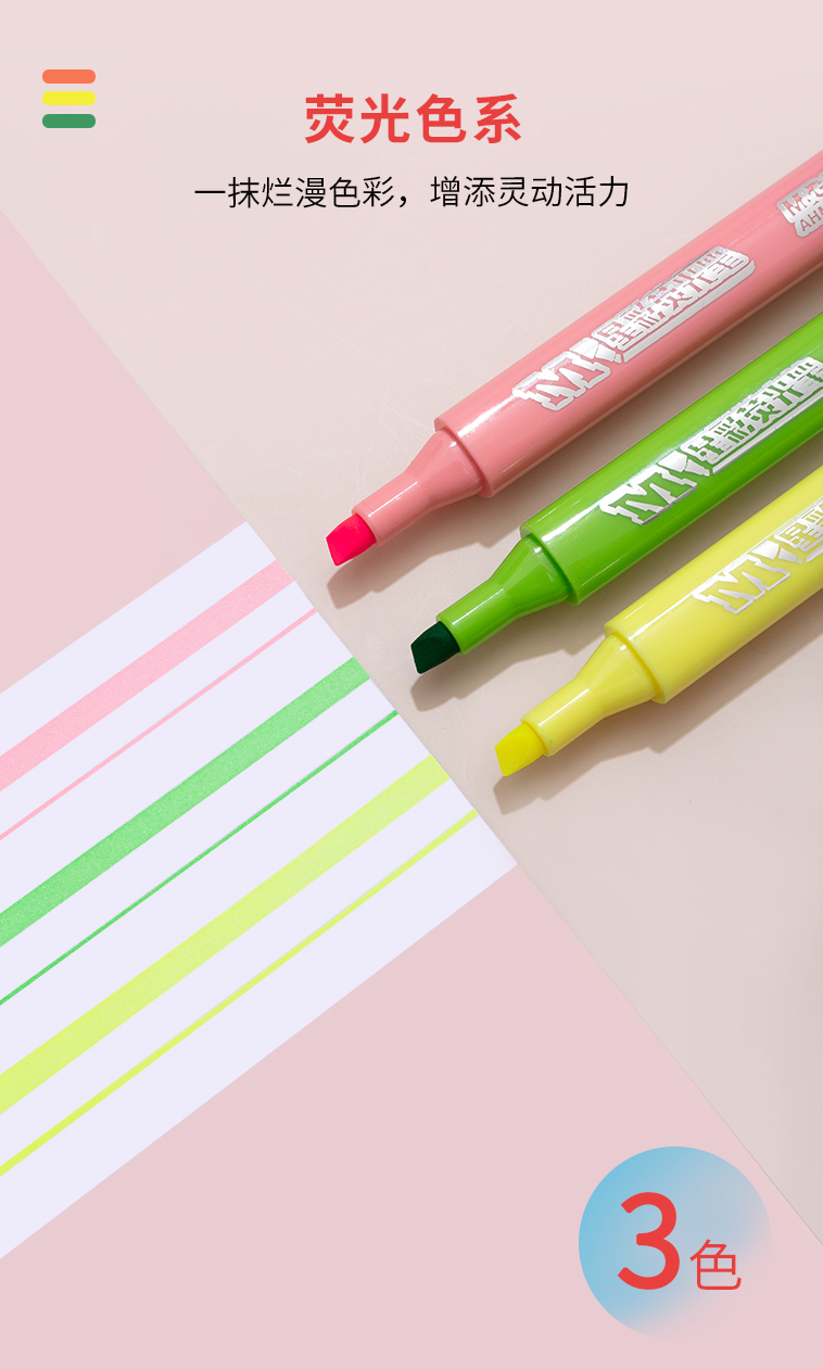晨光星彩熒光筆3色AHMV7601