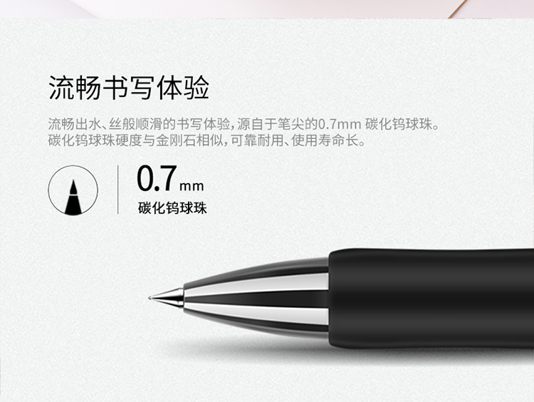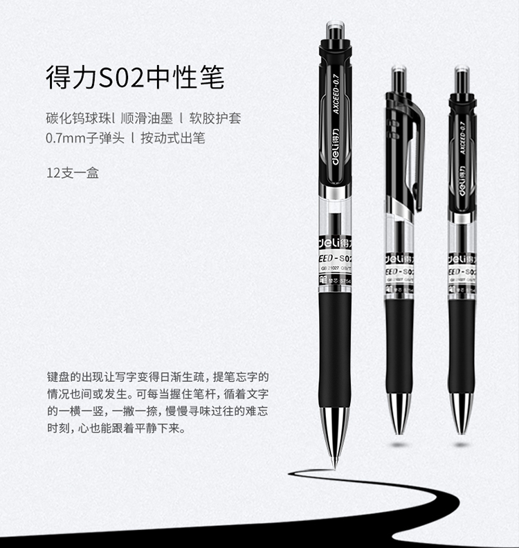 得力S02按動中性筆0.7mm彈簧頭(黑)*12