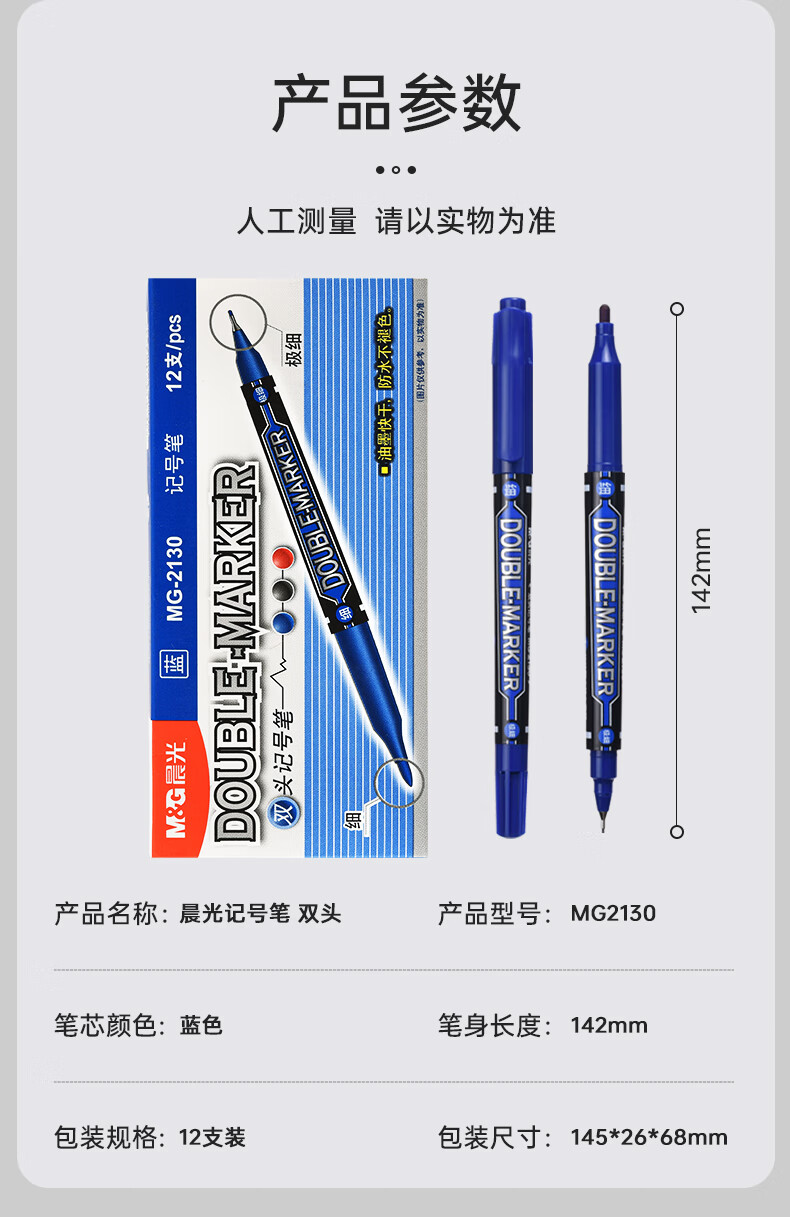 晨光細桿小雙頭記號筆MG2130藍*12