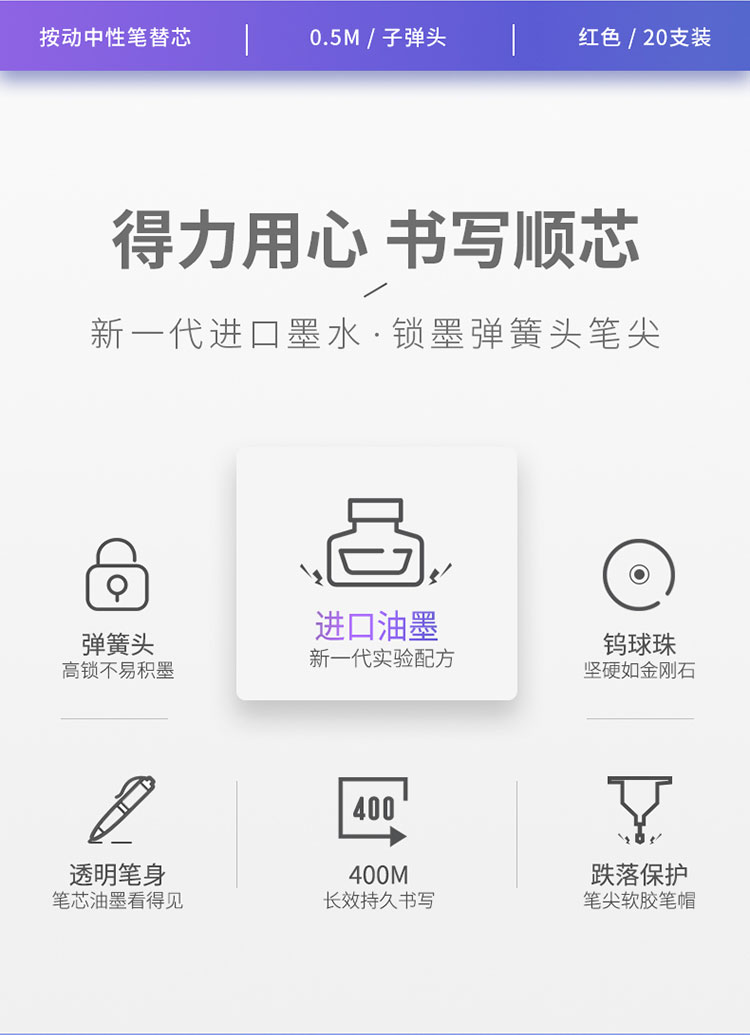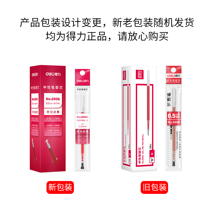 得力6906按鍵式中性筆替芯0.5mm紅色*20支