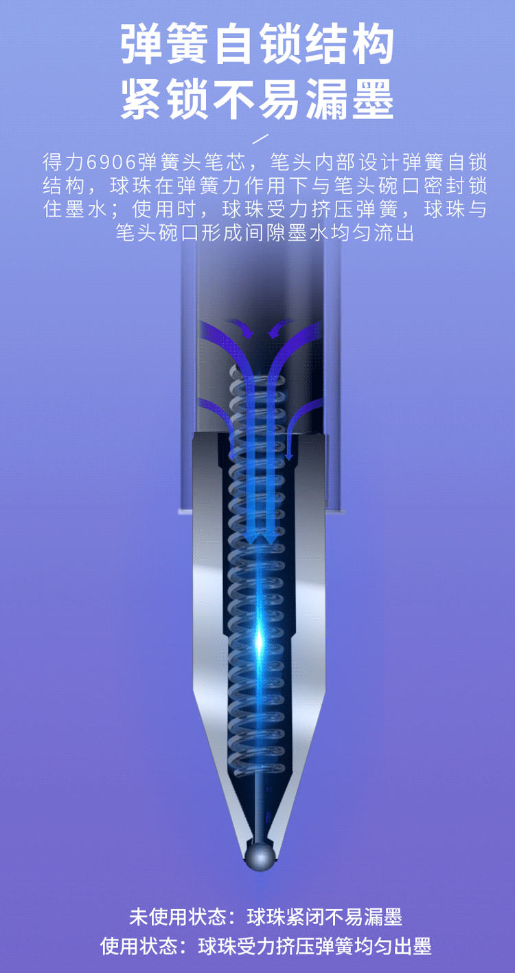得力6906按鍵式中性筆替芯0.5mm墨藍色*20支