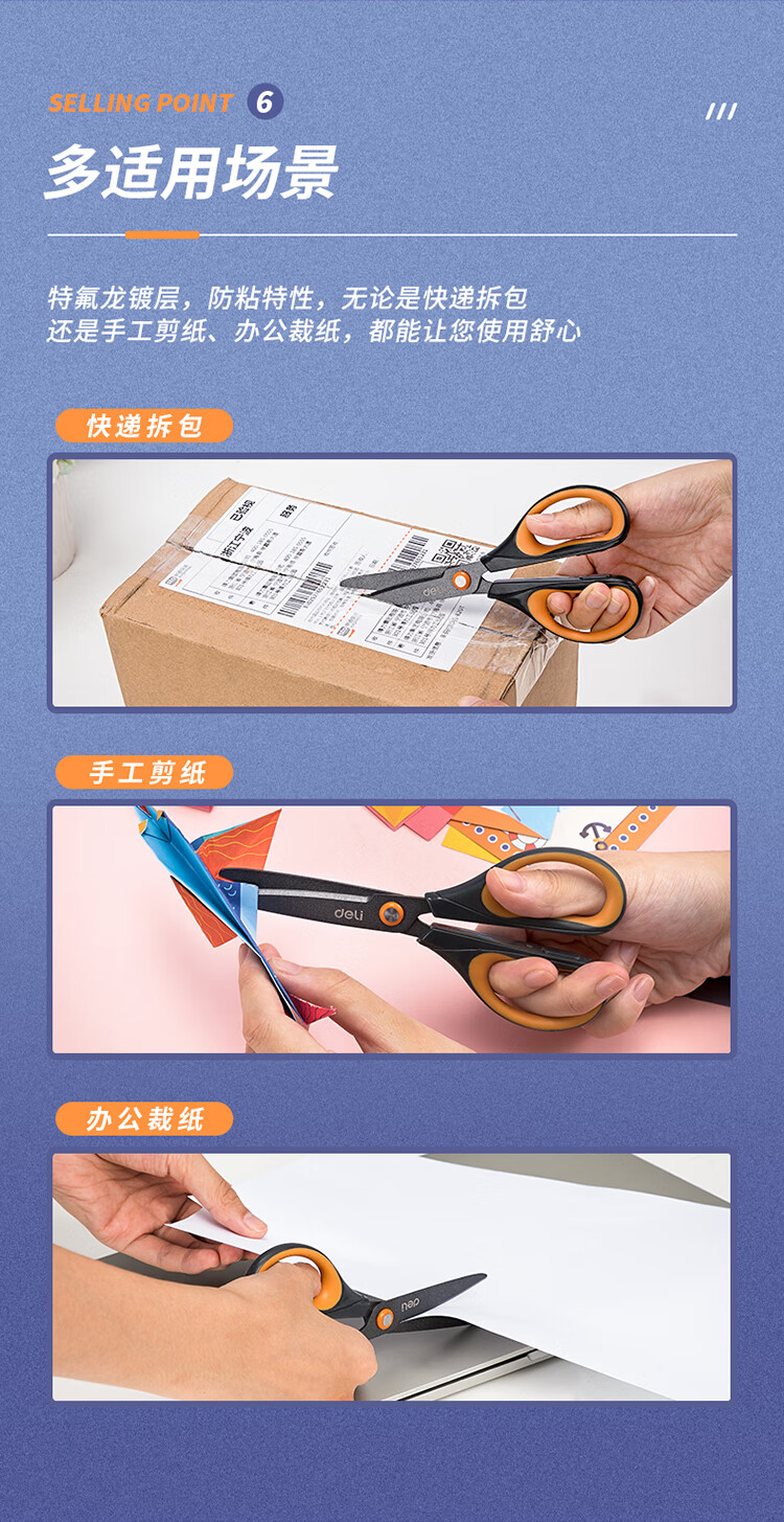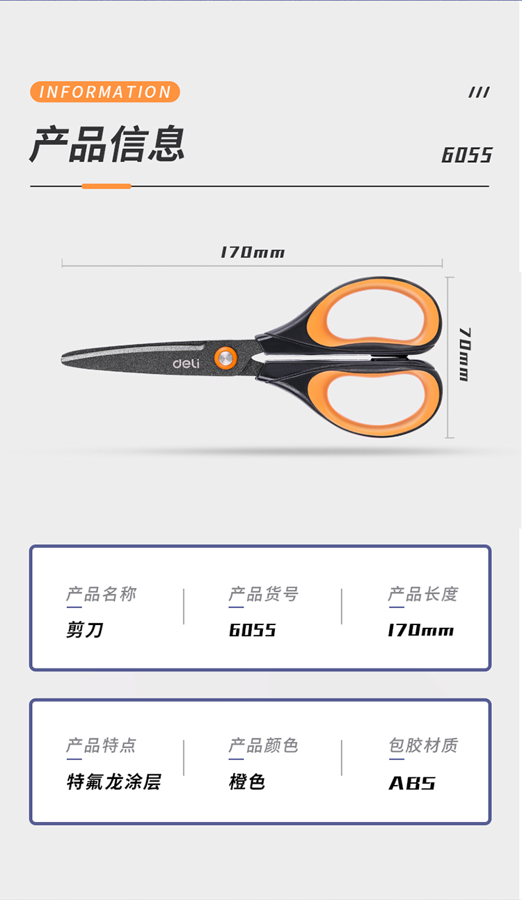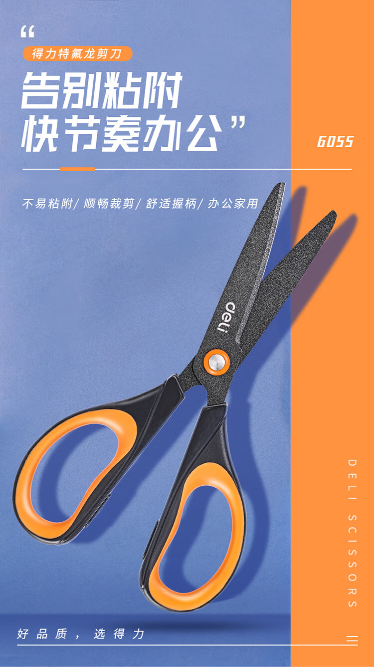 得力6055特氟龍剪刀170mm*12