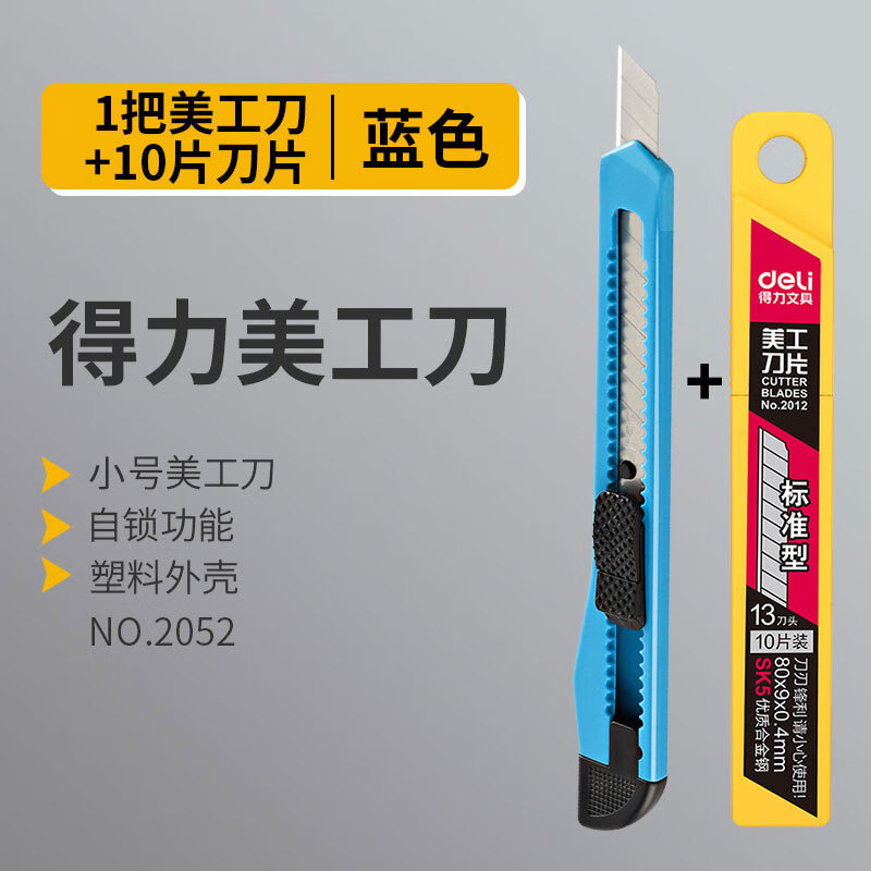 得力2052小號美工刀9mm(藍)