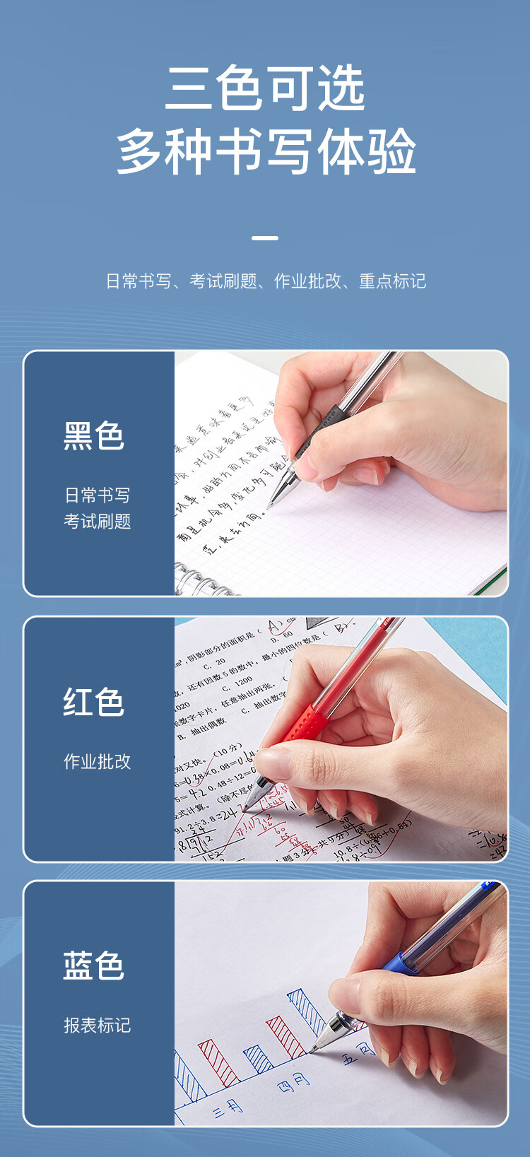 齊心K3511舒適按動中性筆0.5mm藍*12