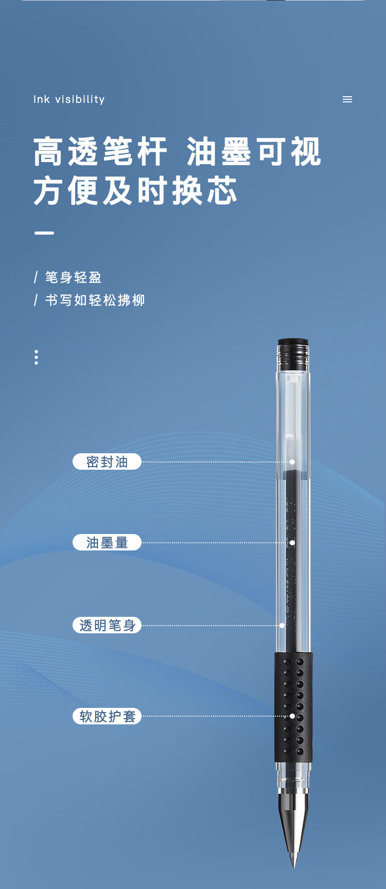 齊心RP606直液式全針管簽字筆藍0.5mm*10