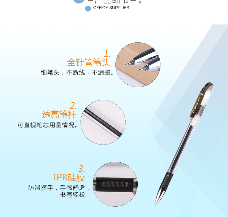 齊心RP606直液式全針管簽字筆藍0.5mm*10