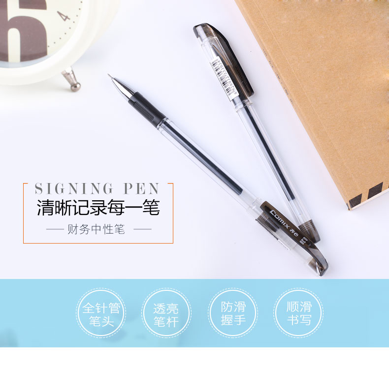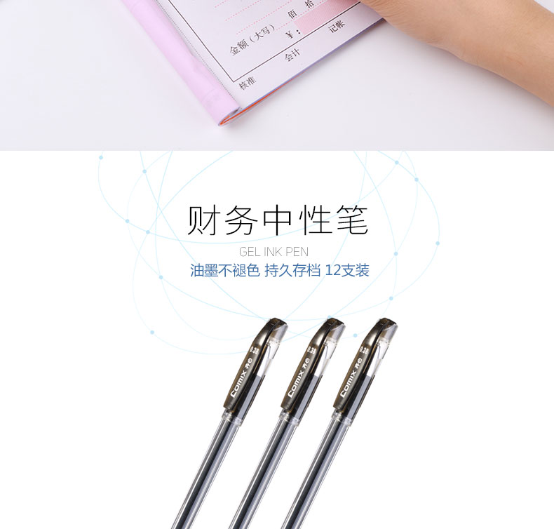 齊心K3511舒適按動中性筆0.5mm黑*12
