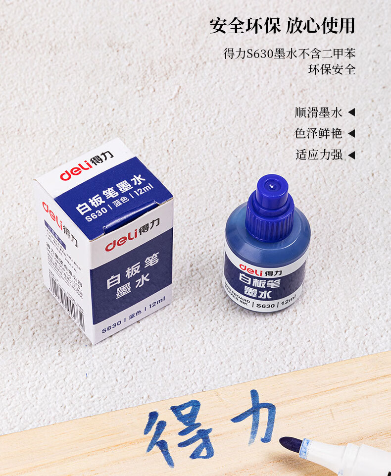 得力S630白板筆墨水(藍(lán))12ml*20