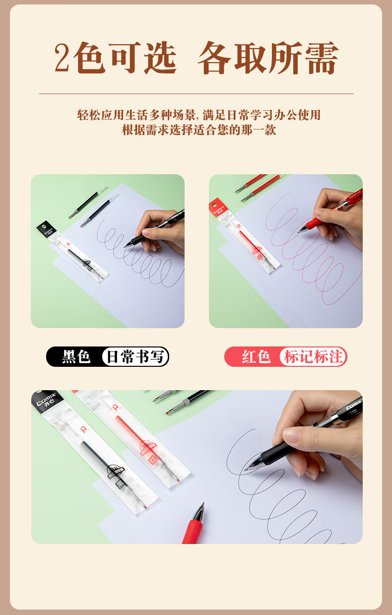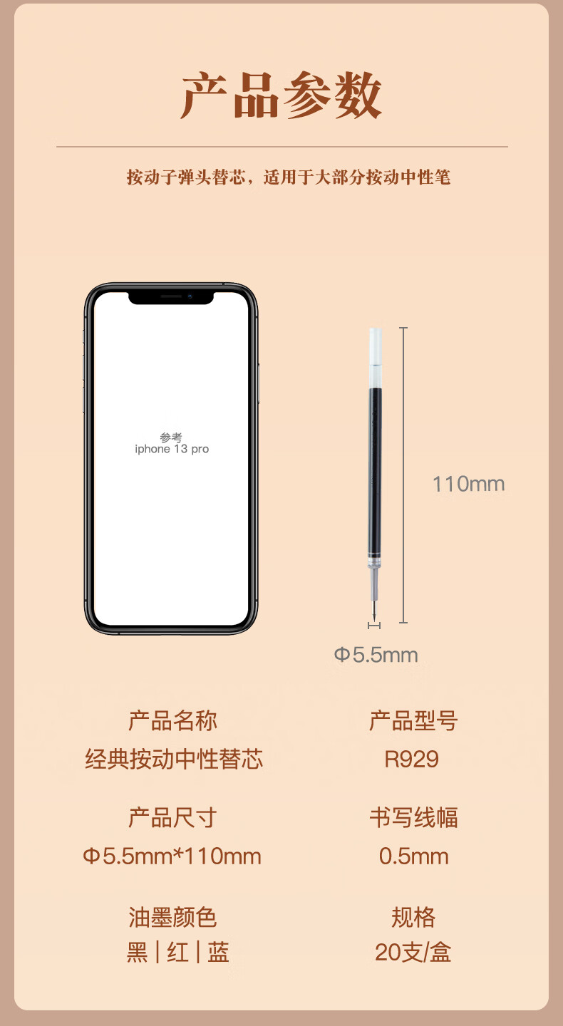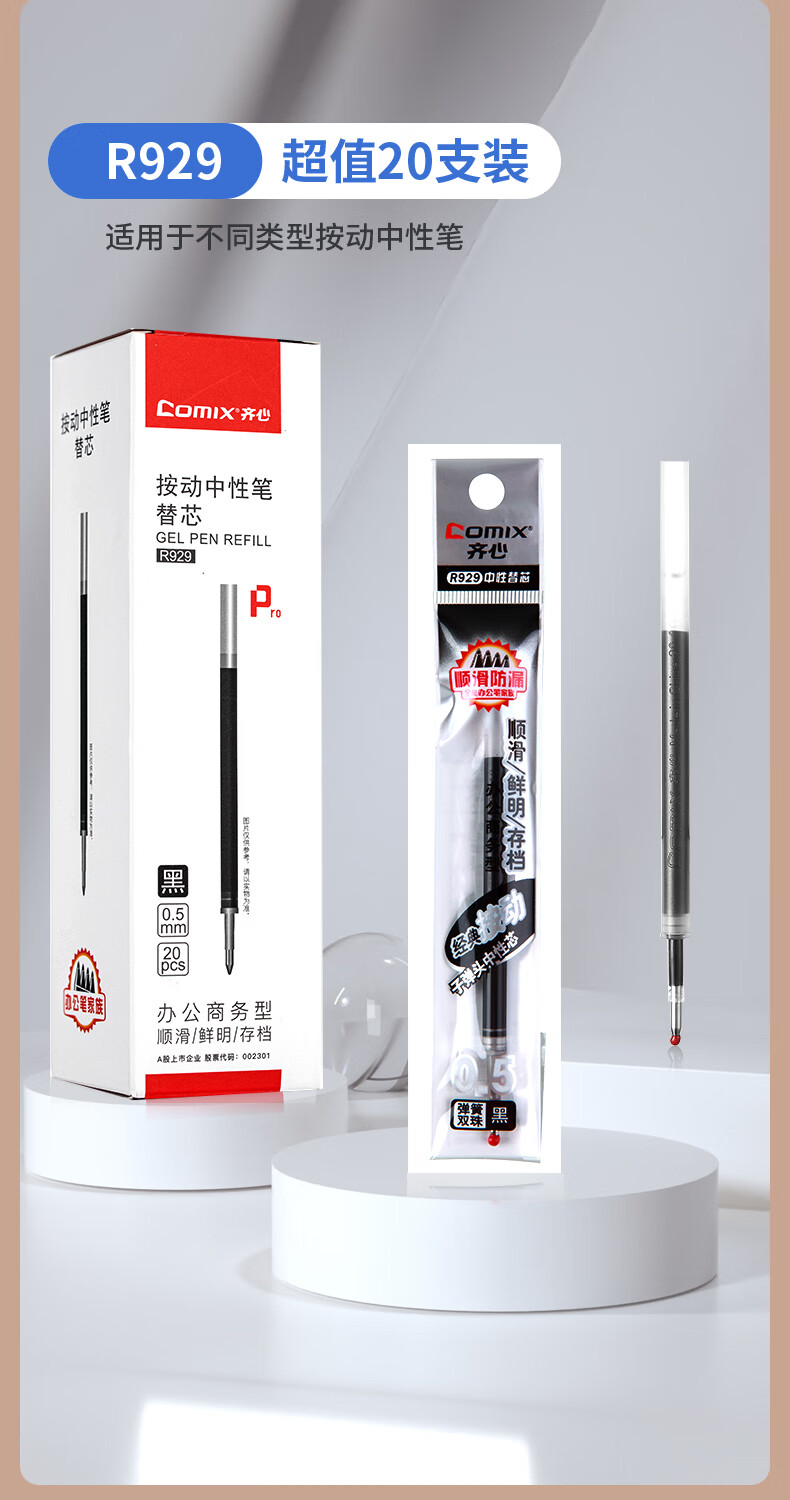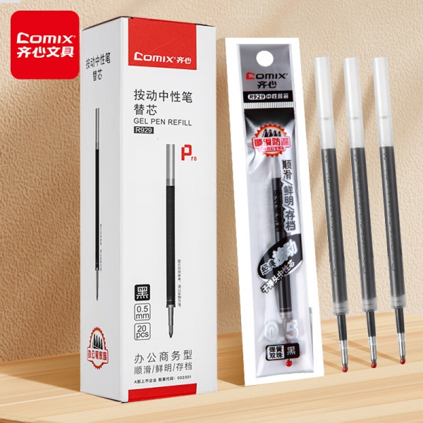 齊心R929經典按動中性筆替芯紅0.5mm*20