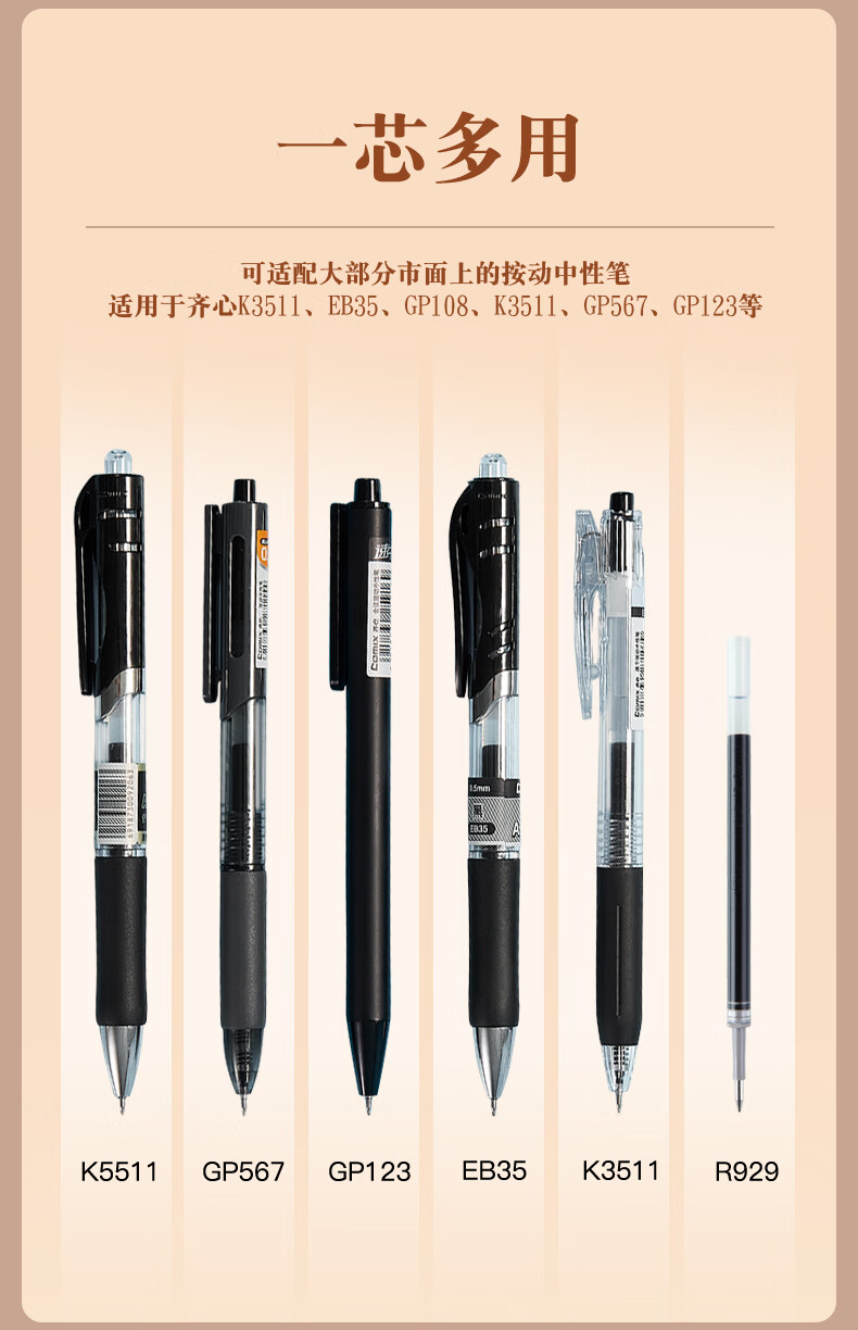 齊心R980通用中性筆替芯0.5黑色*20
