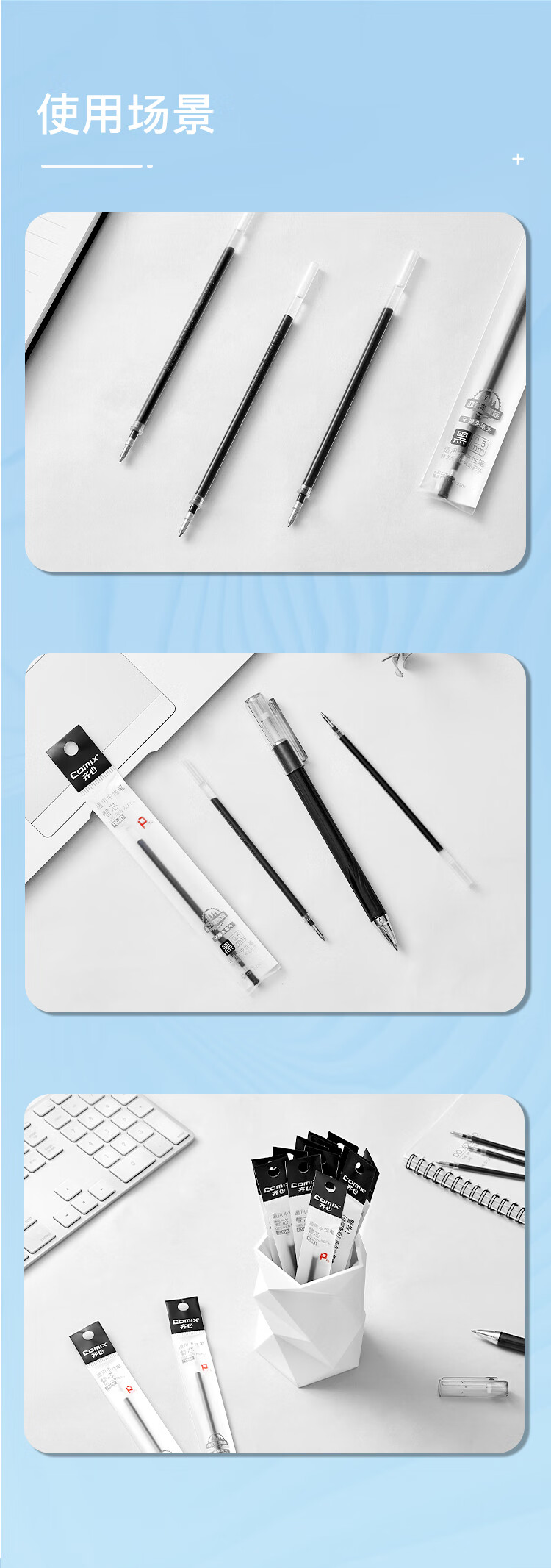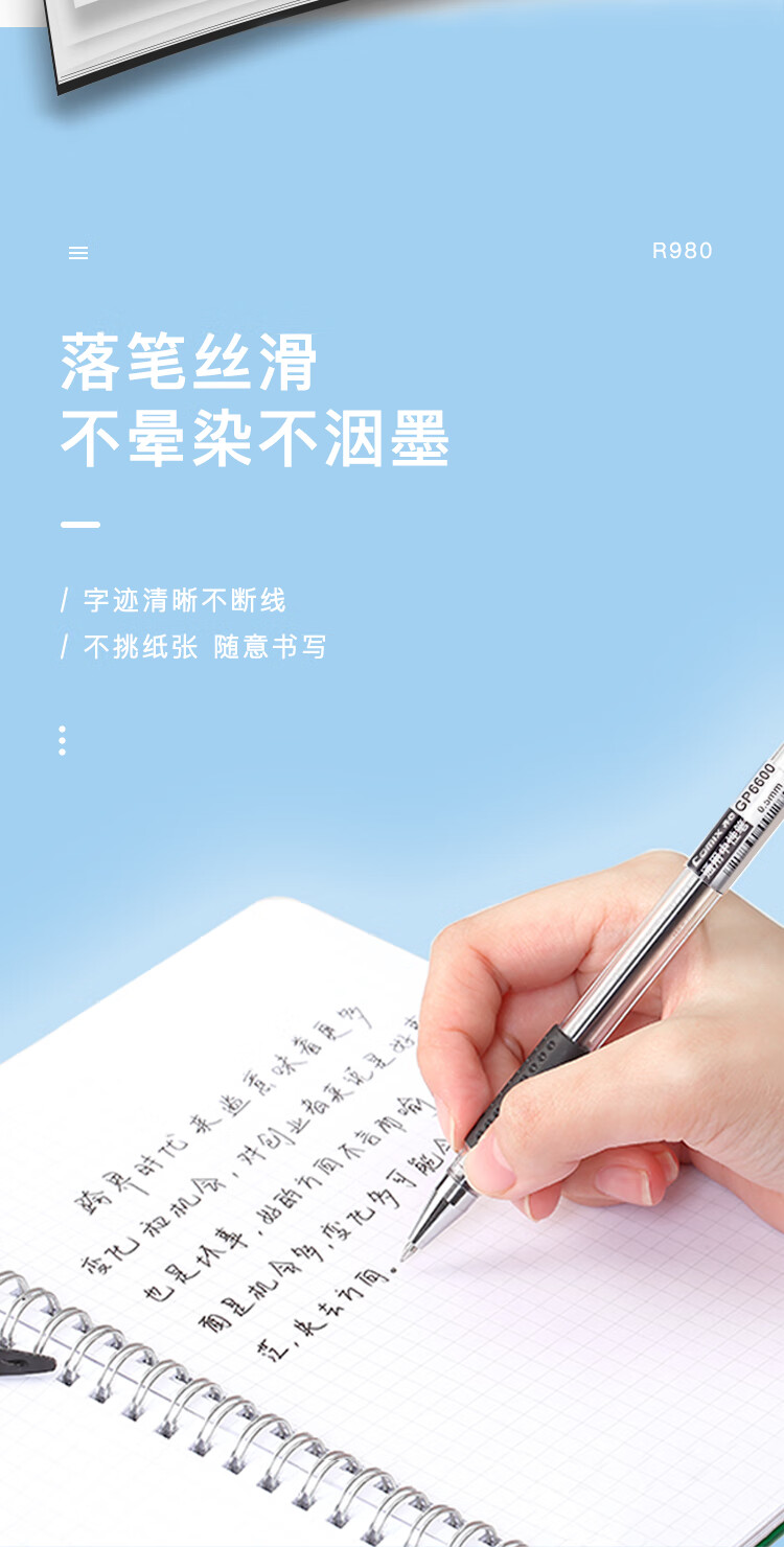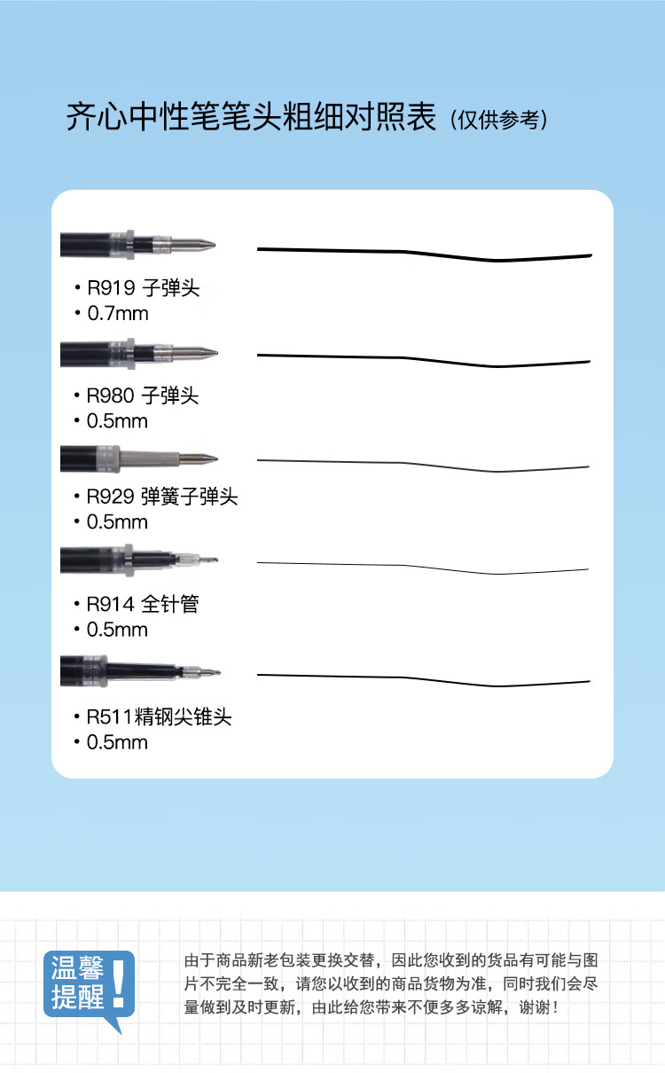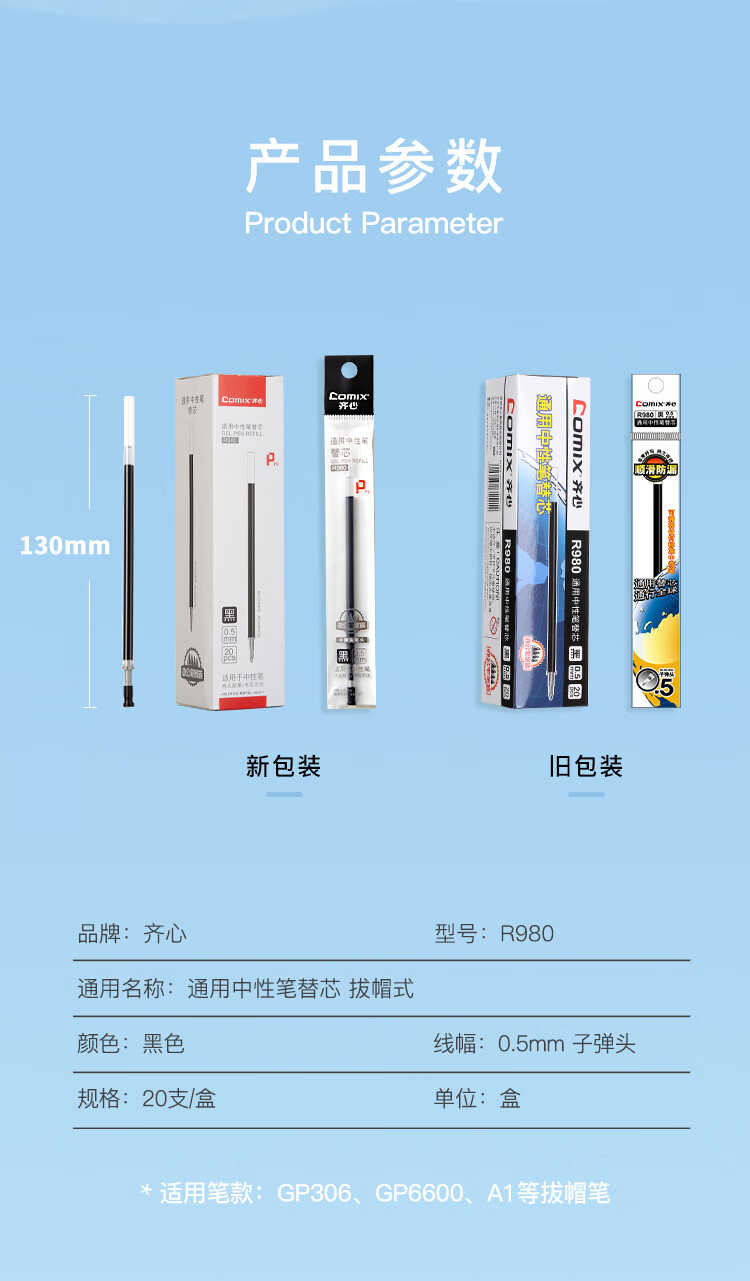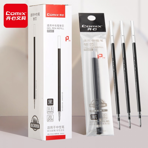 齊心R980通用中性筆替芯0.5黑色*20
