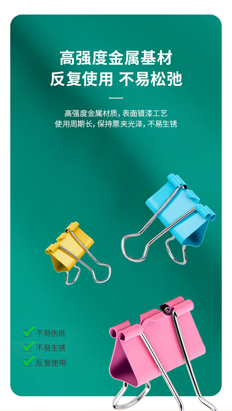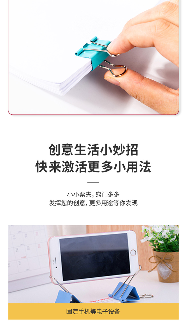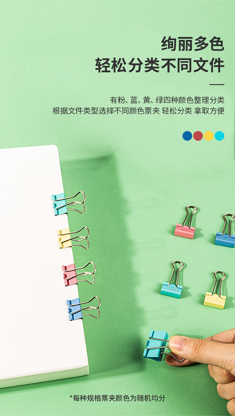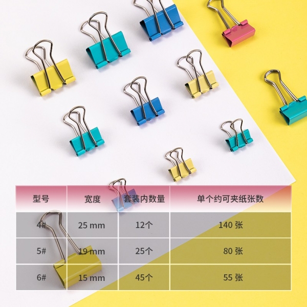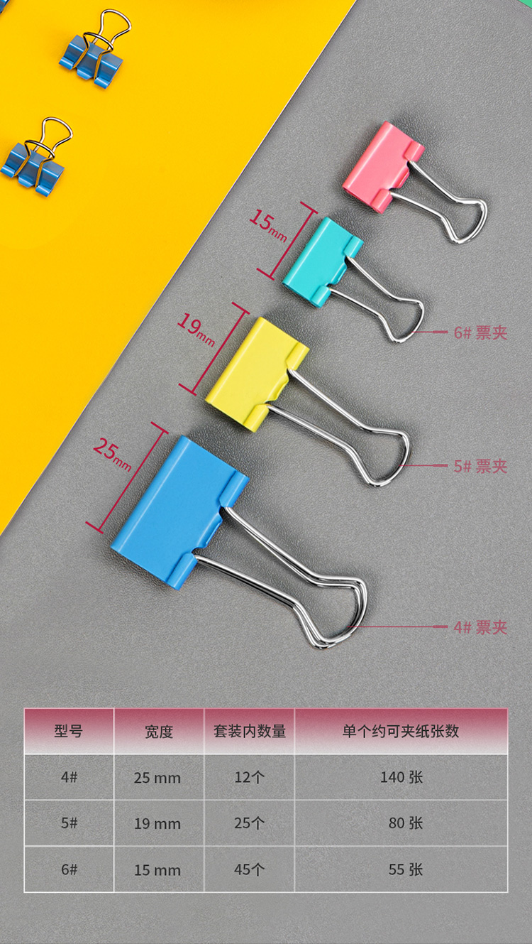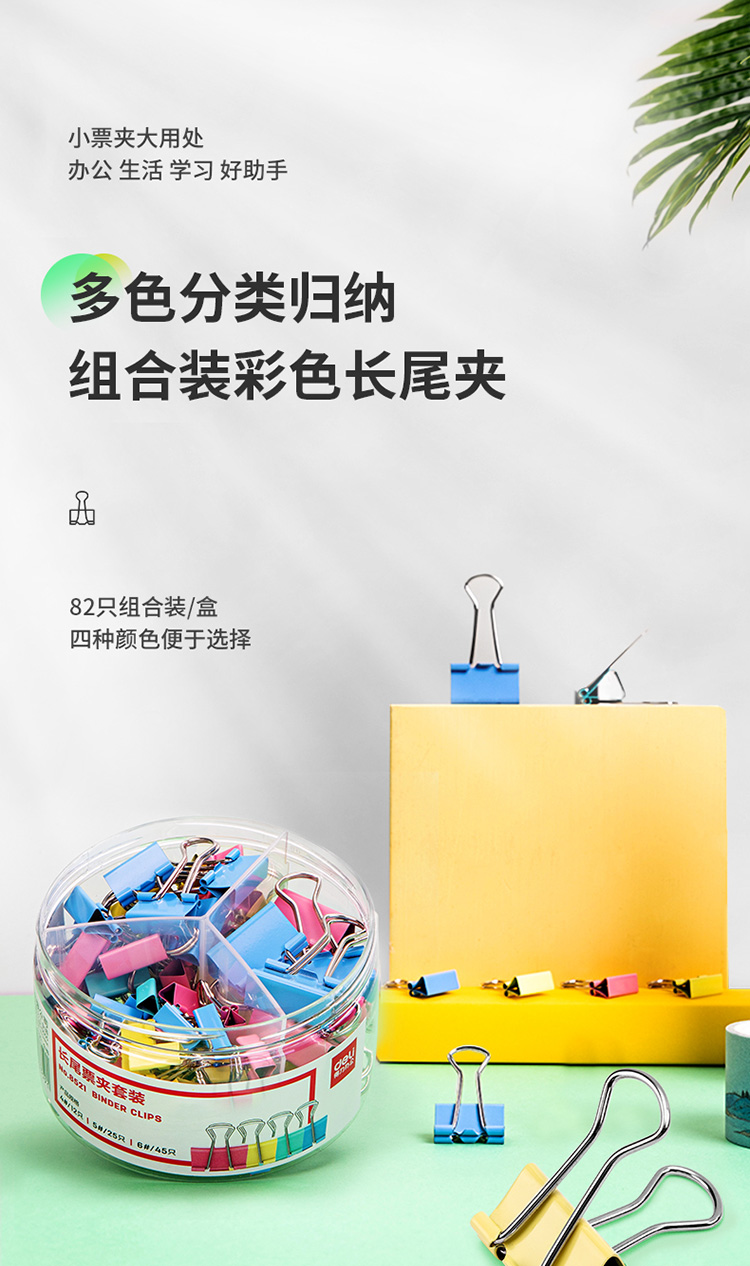 得力8521彩色長尾票夾套裝(混)(82只/筒)