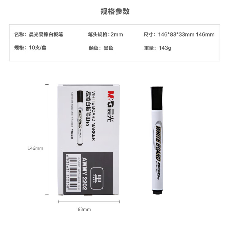 晨光可加墨白板筆單頭AWM26301黑*10