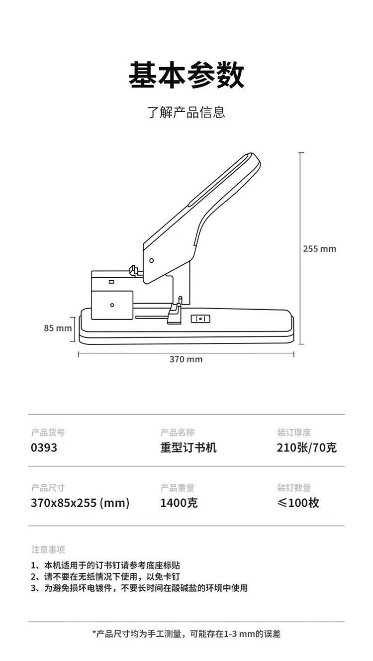 得力0393重型省力訂書機210頁
