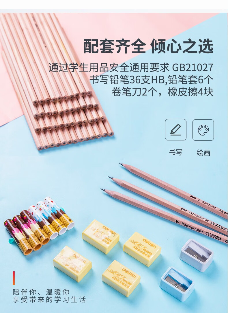 得力S908-HB書寫鉛筆(原木色)(50支/筒)