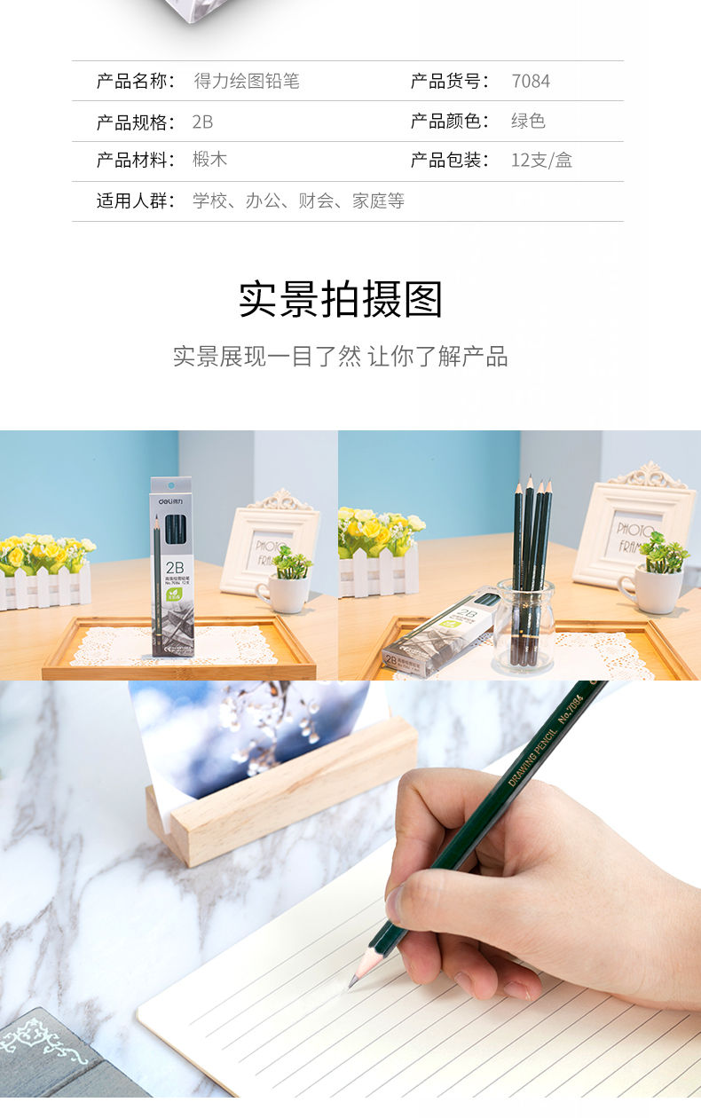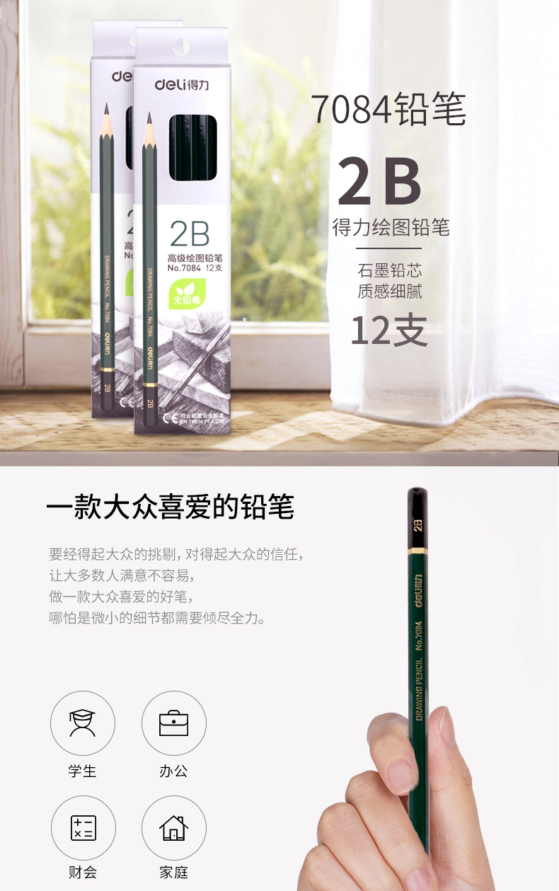 得力7084-2B高級繪圖鉛筆(綠色)(12支/盒)