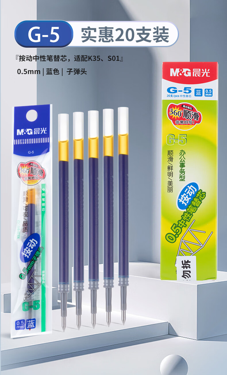 晨光中性筆芯MG6102藍色0.5 20支/盒