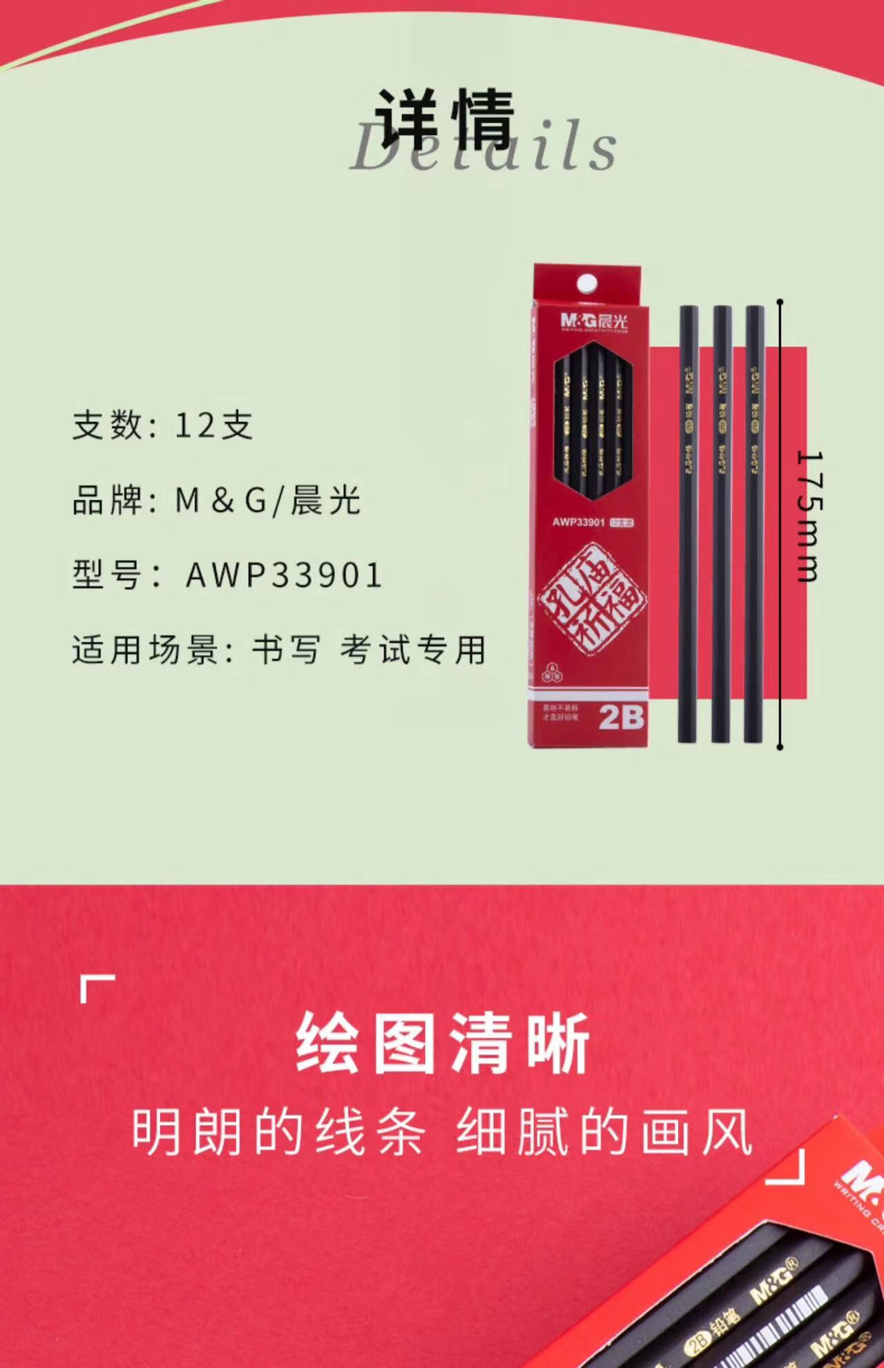 晨光HB木桿鉛筆六角紅黑抽條AWP30802*12