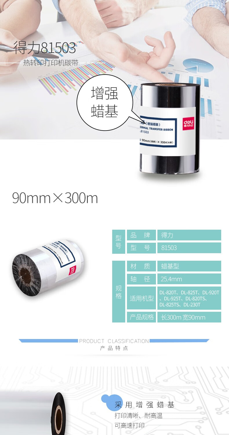 得力81525普通蠟基碳帶(黑)110mm*70m