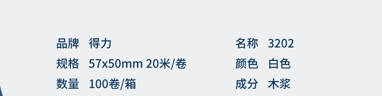 得力3202萊茵河熱敏收銀紙57*50mm*4卷/筒