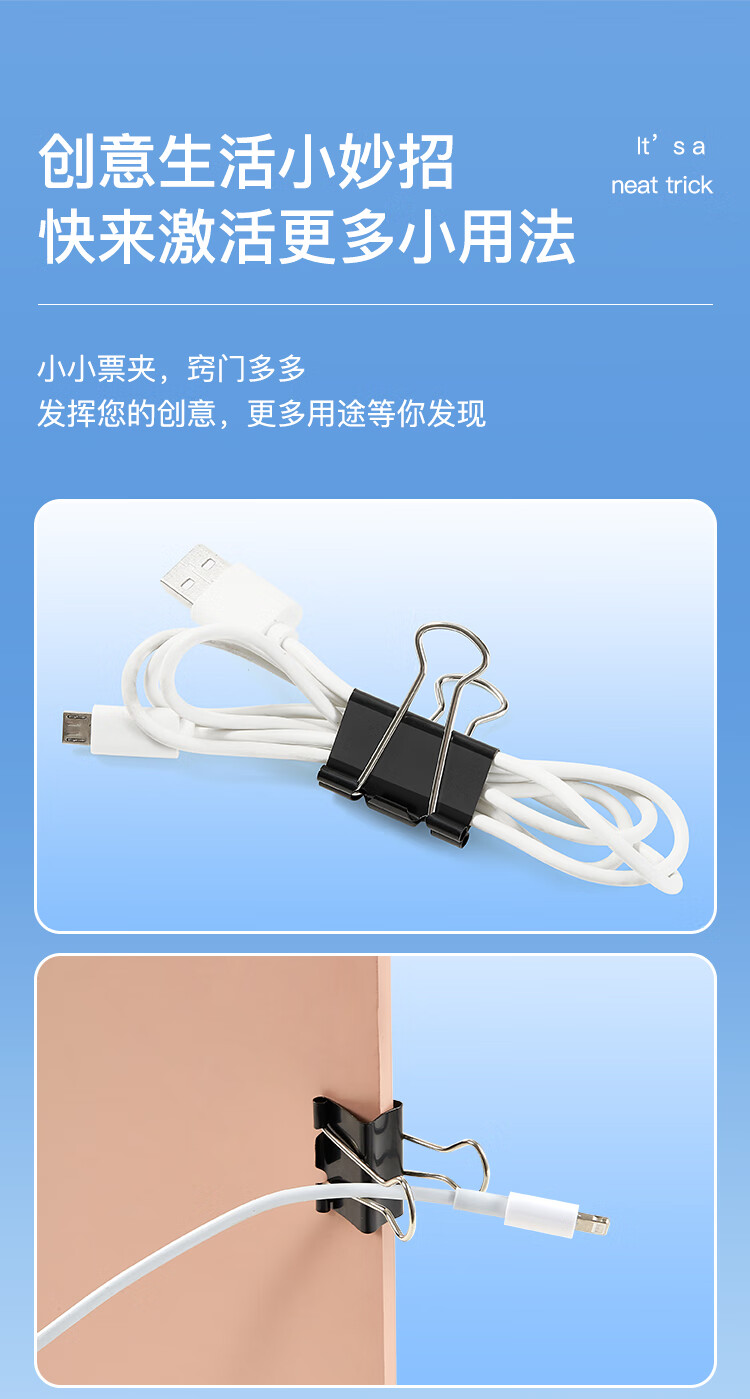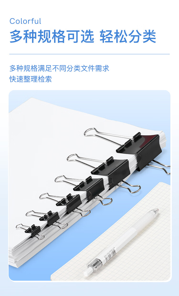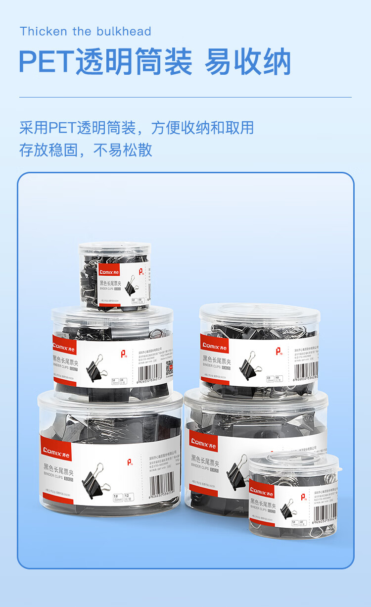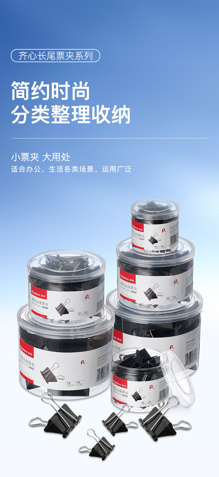 齊心B3629黑色強力長尾票夾19mm*40只/筒*12